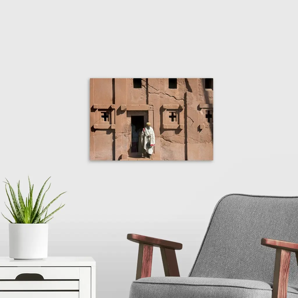Ethiopia, Amhara, Lalibela, Monk Outside The Biete Abba Libanos