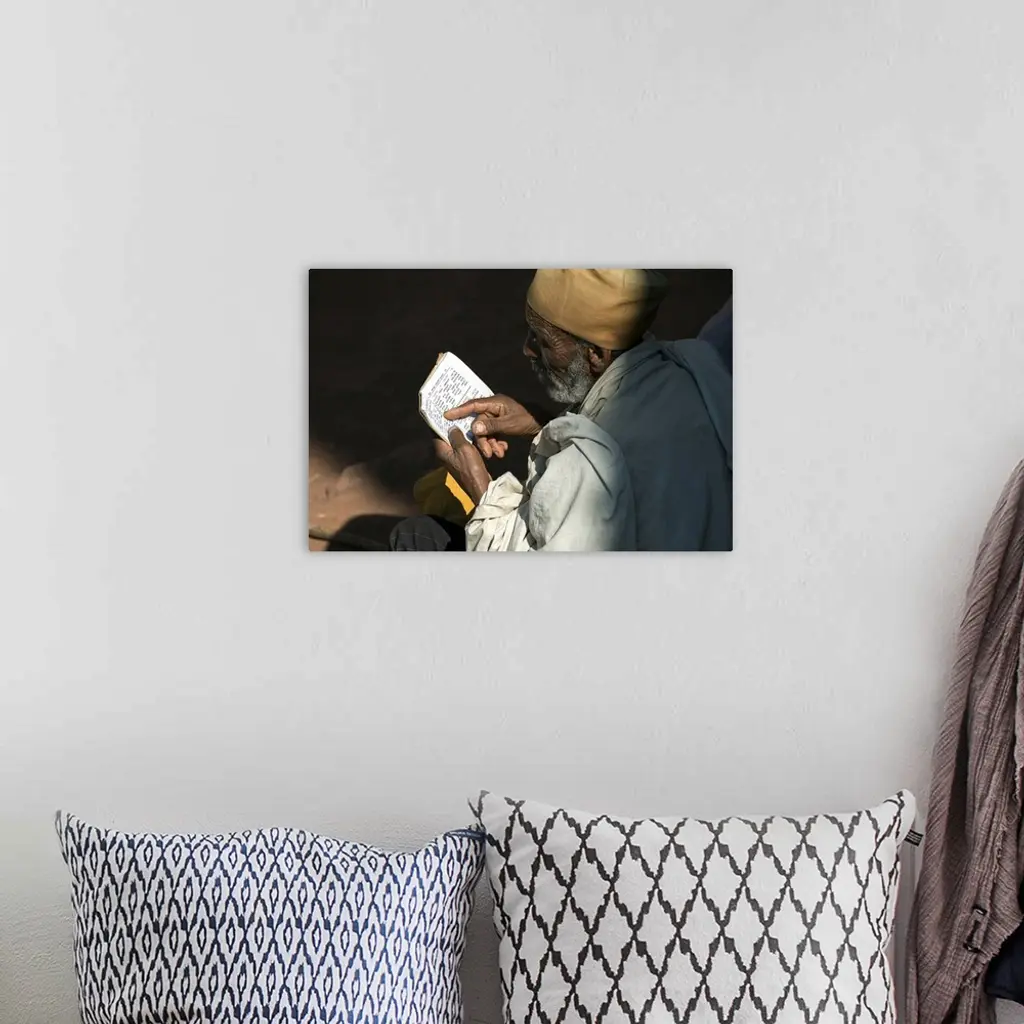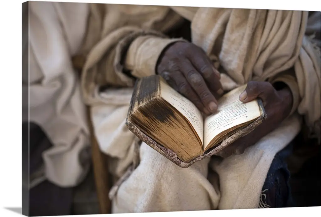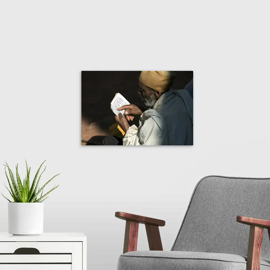 Ethiopia, Amhara, Lalibela, Monk Reading Bible At Biete Abba Libanos