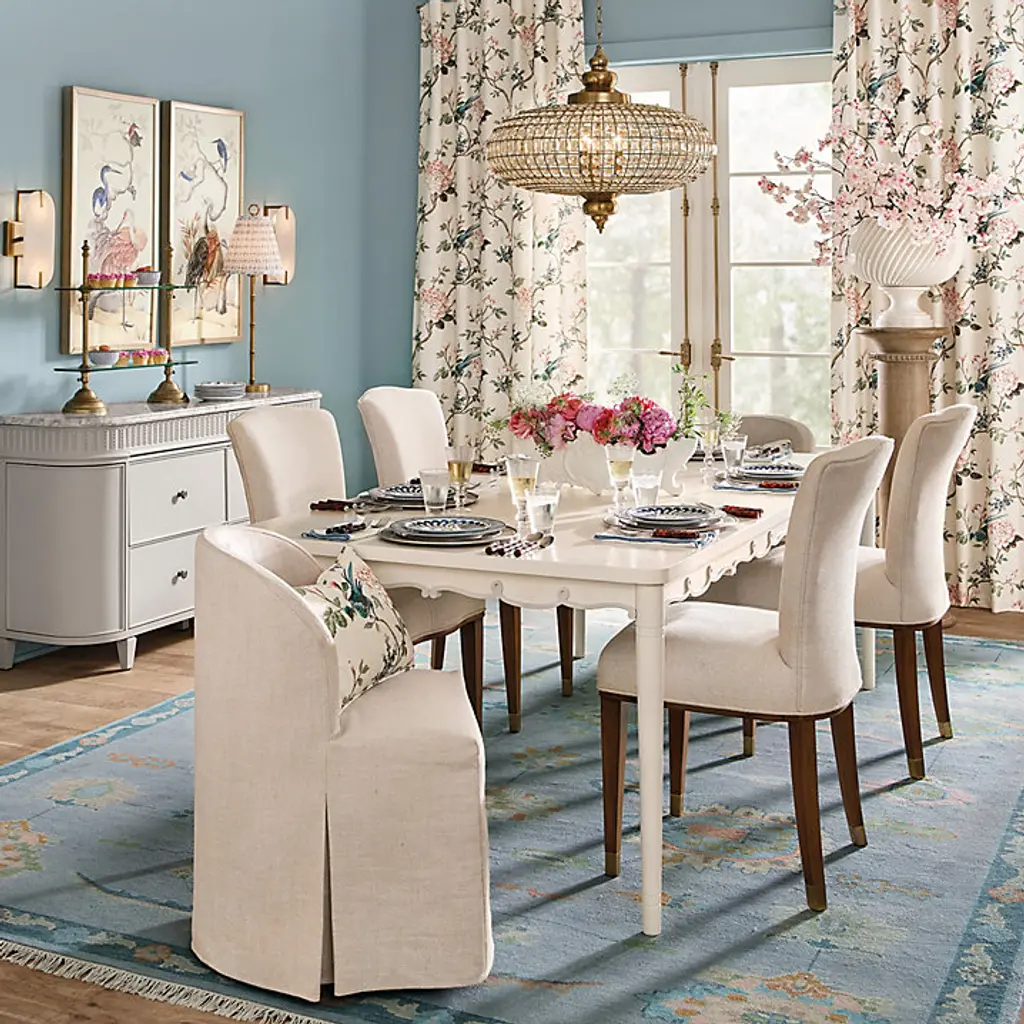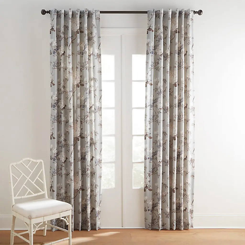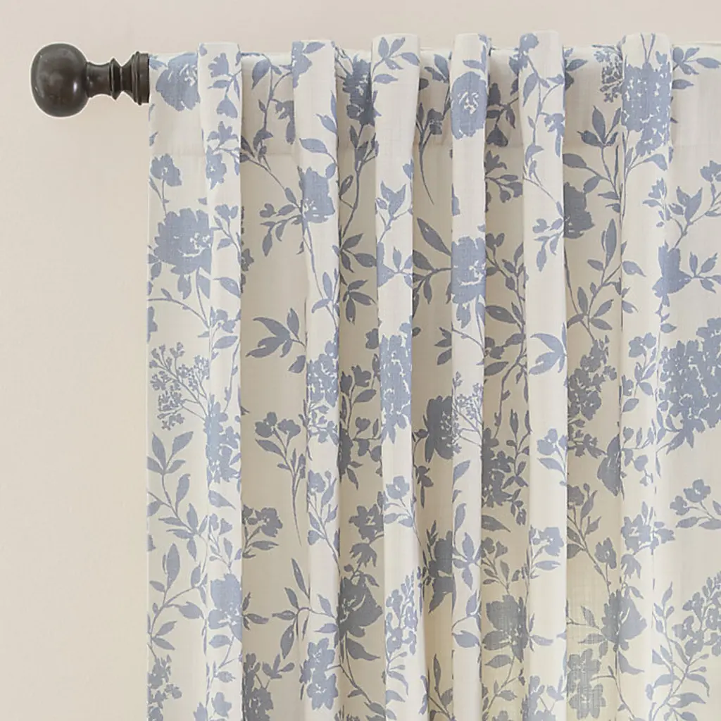 Nostalgic florals are coming home again. Our Etta Floral Drapery Panel celebrates the classic garden floral in a lovely bird and botanical motif blooming in shades of soft white, cornflower, and indigo on a mineral gray ground. The calming scene is printed on slubby, linen-look poly-cotton blend for a beautiful drape and nicely weighted hand. This gorgeous window treatment sets a tranquil mood in the living room, dining room or bedroom, and hangs from its 3-inch rod pocket or included pins. Etta Floral Drapery Panel features: