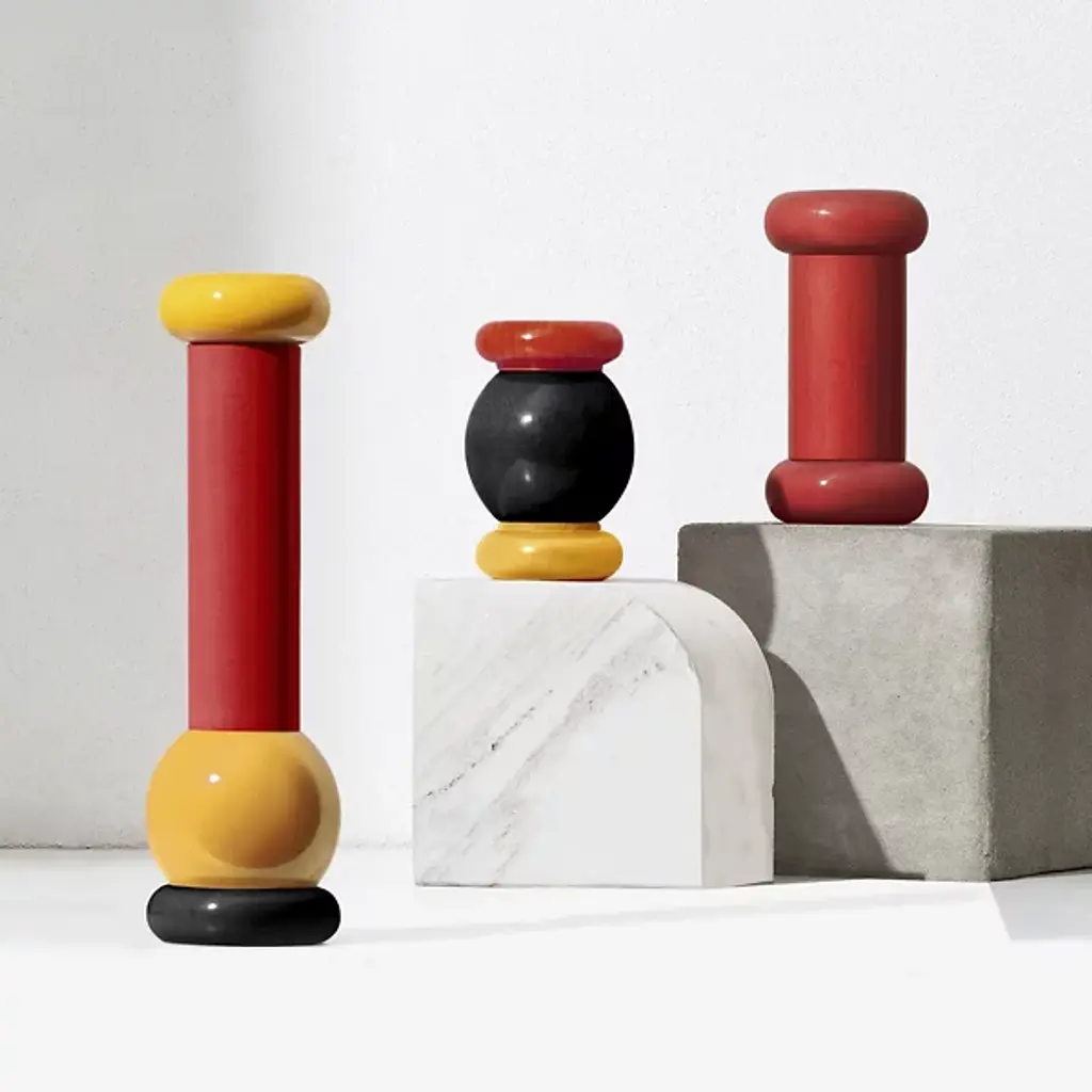 Spicing up the table with bold colors and the plate with added flavor. The Ettore Sottsass Spice Grinder ES18 from Alessi pleases visually and in the hands as a composition of sculpted beech wood. Creator Ettore Sottsass infuses each of his pieces with the idea that design should be sensual and exciting. This piece seduces with a symmetrical silhouette of tight curves. Made from beech wood, these curves are achieved in a handcrafted turning process. The eyes flow from top-to-bottom thanks to Sottsass’s renowned use of harmonious yet contrasting colors.
