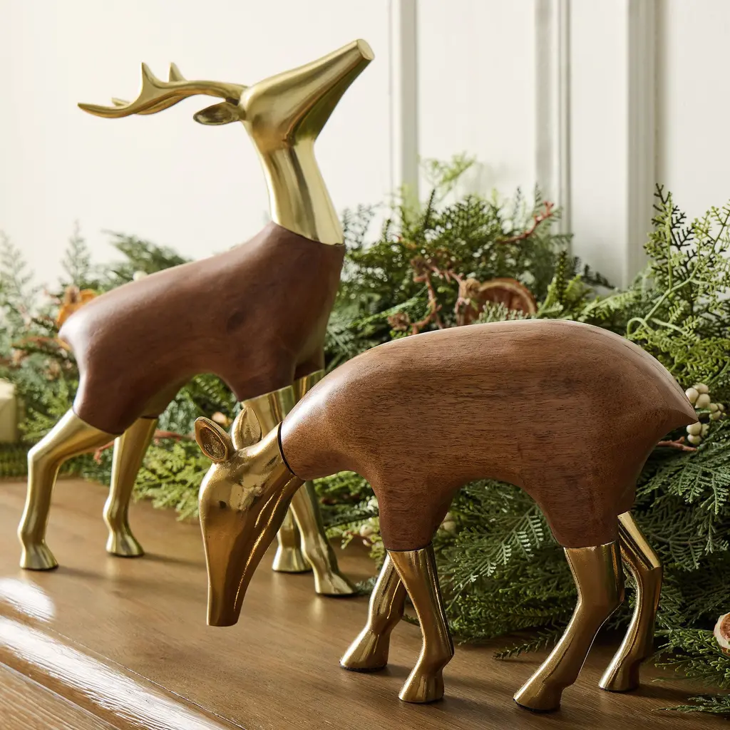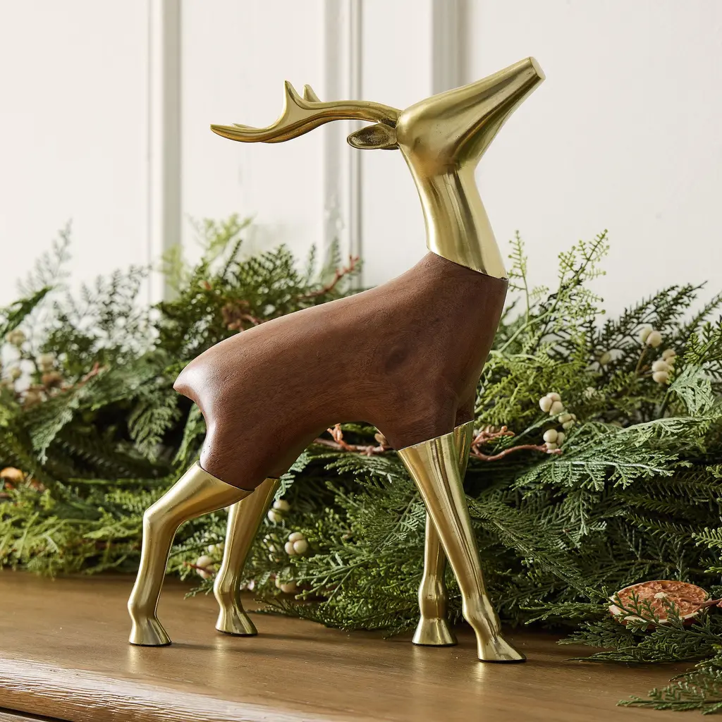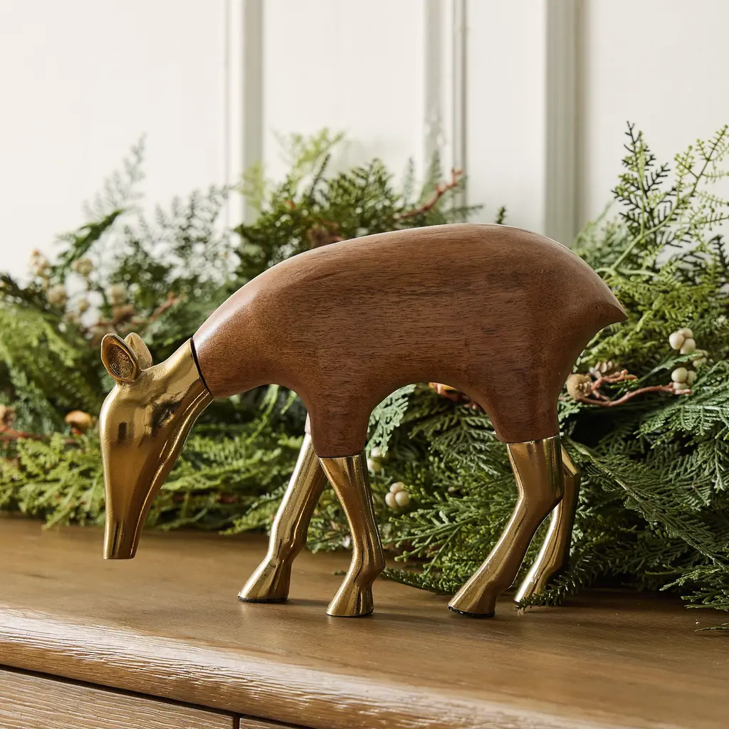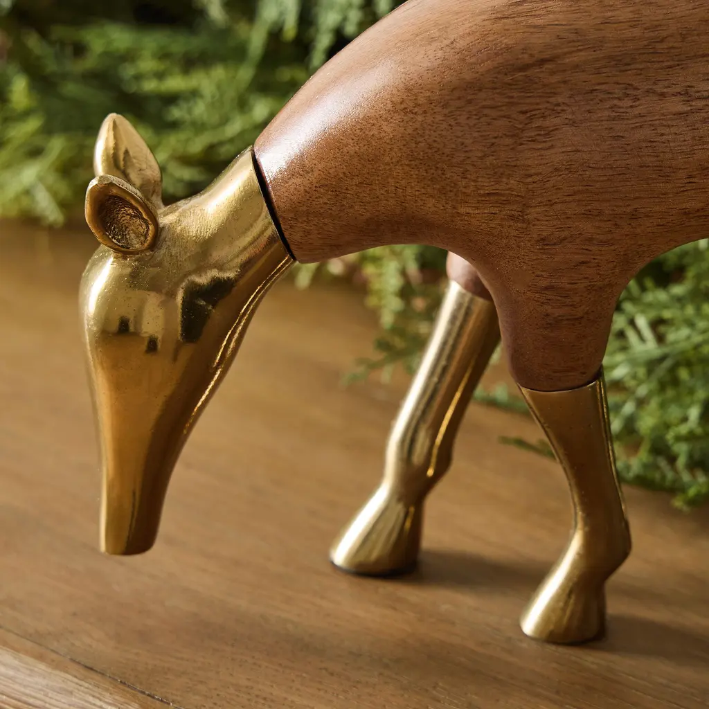 Eugene Wood & Brass Deer Object