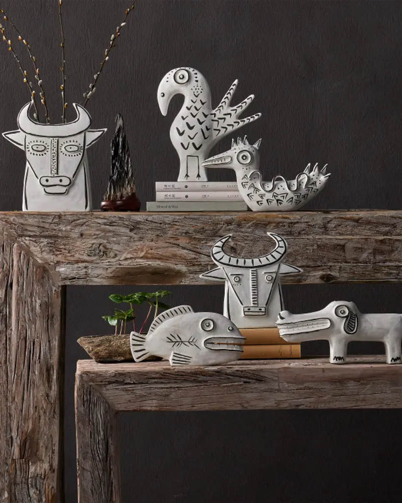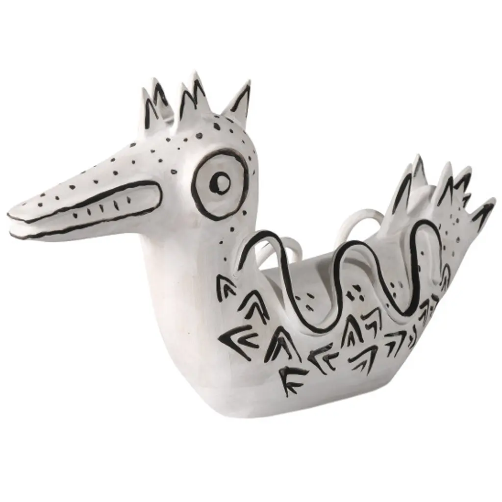 Artist Xiang Yang, a brilliant ceramist, took a walk on the wild side when he created Eunice the Duck. Made of porcelain with whimsical details painted by the artist, the haunting vessel will create a stir not unlike Picasso's work did during his ceramics period as he experimented in the South of France.