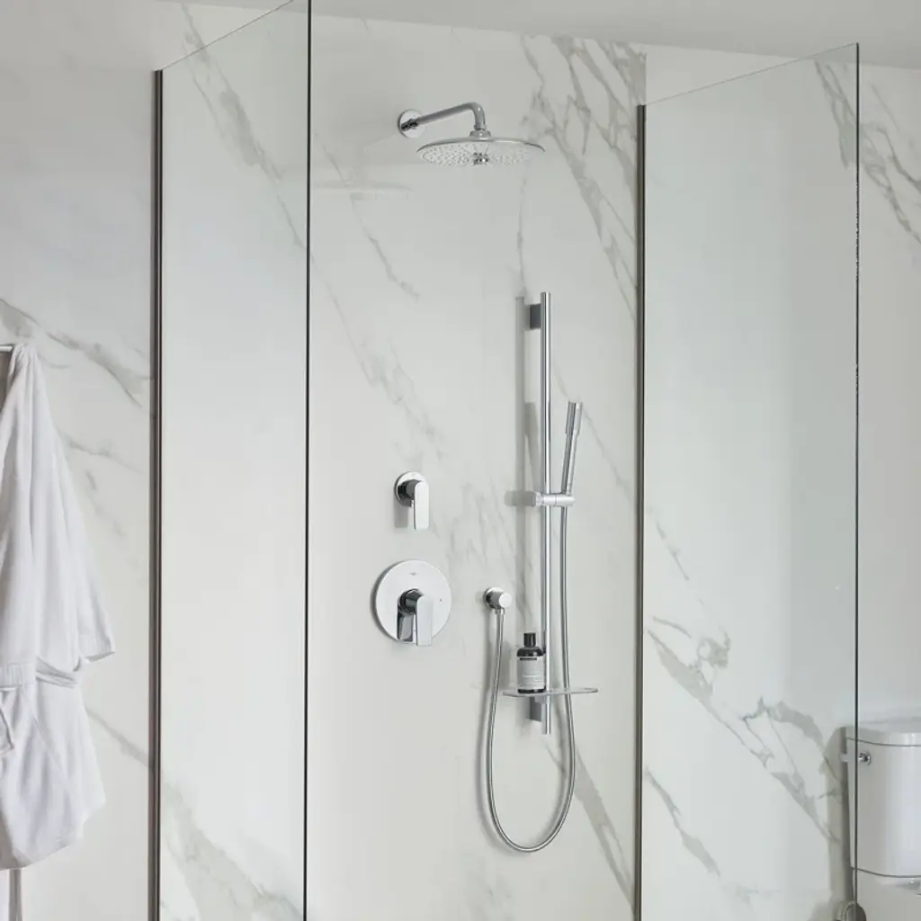 The head shower – unique showering style and versatility! A fantastic bathroom upgrade! This head shower, which comes with three innovative spray zones, is a great way to add instant luxury to your bathroom. Jet spray is powerful and focused, perfect for washing out shampoo and an invigorating head or neck massage. The SmartRain Spray is wider for an energizing yet relaxing experience and rain spray uses all the nozzles on the generous spray plate for full-body coverage and a truly soothing shower. To choose the spray you want all you have to do is turn the innovative SmartControl in the center of the spray head. Simple! With its slim profile and timeless design, it complements a wide range of bathroom styles and is packed with the manufacturer's technology. EcoJoy has a 9.5 l/min flow limiter that saves water while ensuring maximum showering satisfaction. DreamSpray ensures the flow of water from every nozzle is just right – whichever spray zone you select – for a wonderful shower whatever your mood. The scratch-resistant and dazzling StarLight chrome finish keep its sparkle for a lifetime and the SpeedClean nozzles are designed to brush free of limescale with a simple wipe. It’s easy to install and the Inner WaterGuide prevents the surface from getting too hot to protect both your sensitive skin and the chrome finish.