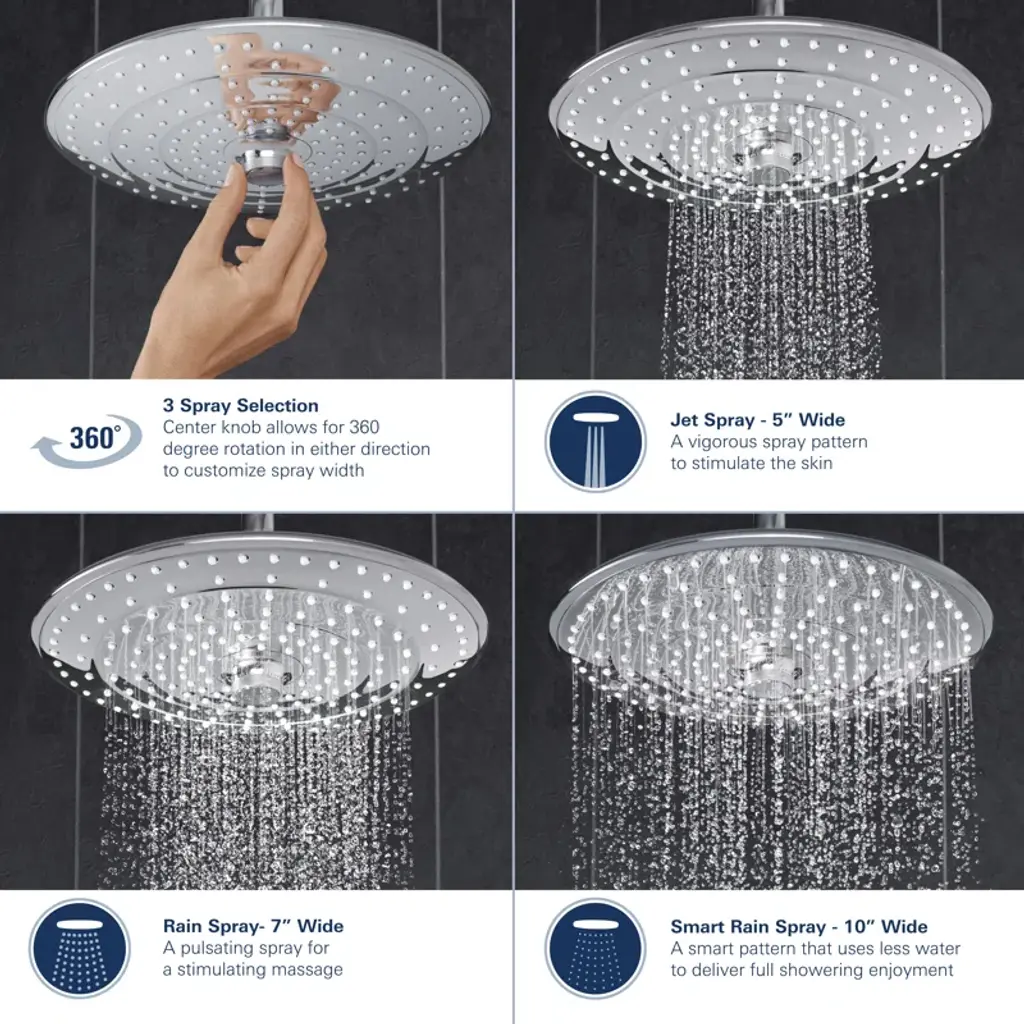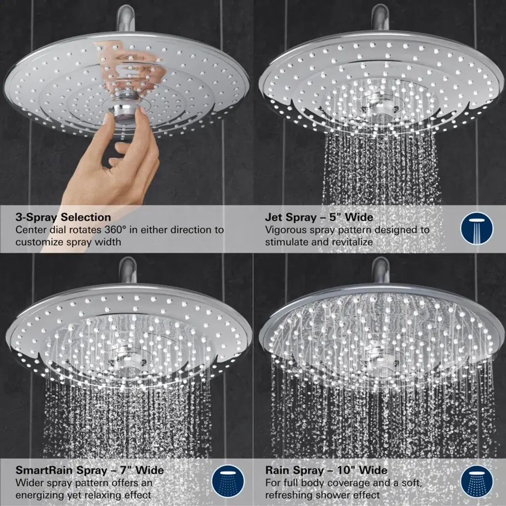 Euphoria Fixed 3-Setting Rain Shower Head Jet Smartrain Settings