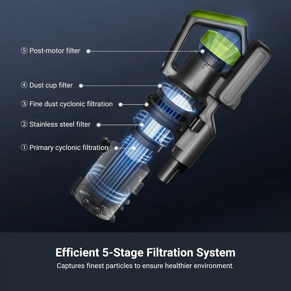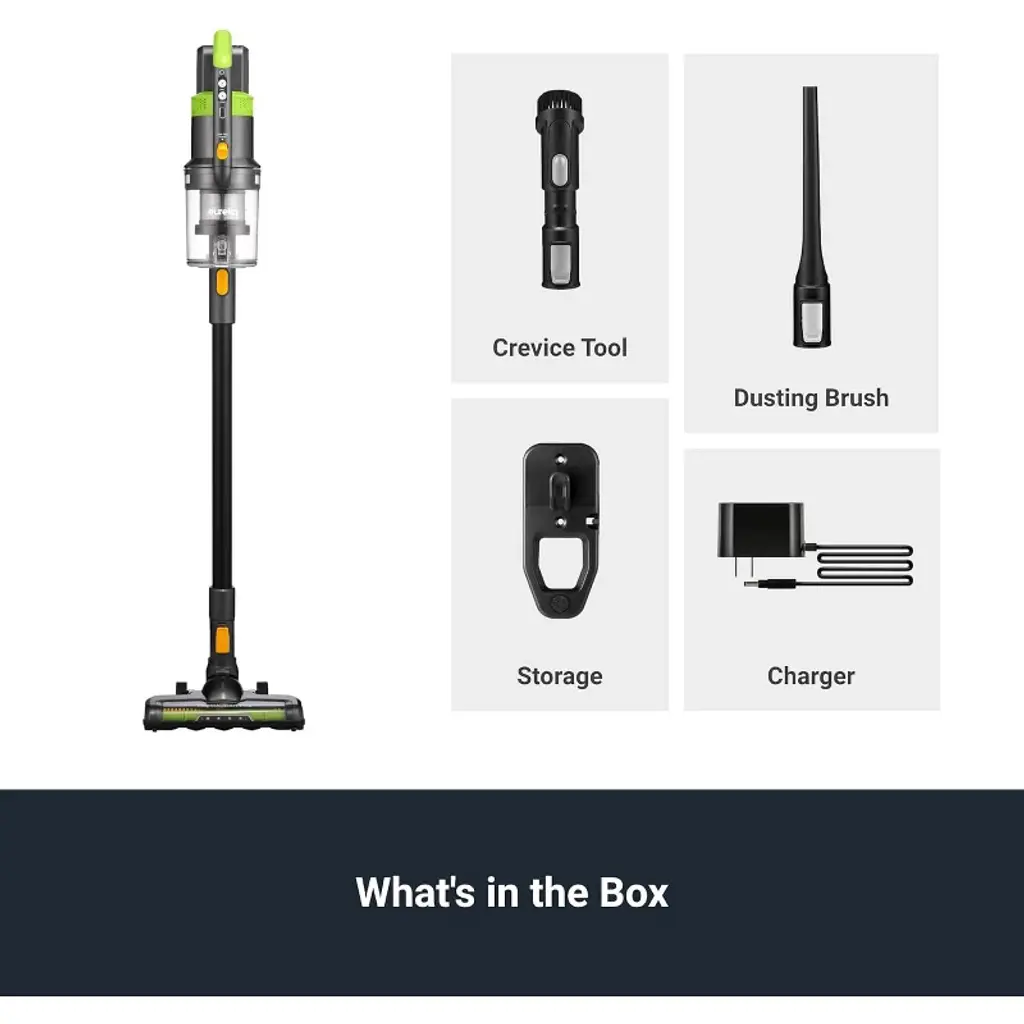 Eureka is proud to offer whole home cleaning solutions to make life a little easier. The Eureka NEC285GR is a powerful and convenient battery-operated cordless vacuum cleaner that keeps your home clean and fresh. It weighs only 5.3 lbs, making it easy to maneuver and carry around. With its cordless, battery-operated vacuum cleaner technology, you won't be tethered to a wall socket. The rechargeable battery delivers up to 40 minutes of uninterrupted cleaning time on a single charge, providing plenty of time to tackle even biggest cleaning jobs. The Easy Rest feature and included wall mount allows convenient storage and charging. This wireless vacuum cleaner is also incredibly versatile with LED headlights and multiple accessories for cleaning a variety of surfaces and tight spaces between furniture. Maintenance is a breeze with the washable filter, which can be easily removed and cleaned. Don't settle for a bulky and cumbersome vacuum. Upgrade to the Eureka NEC285GR cordless vacuum cleaner perfect for your home, and enjoy the convenience and power of a stick cordless vacuum that truly delivers.