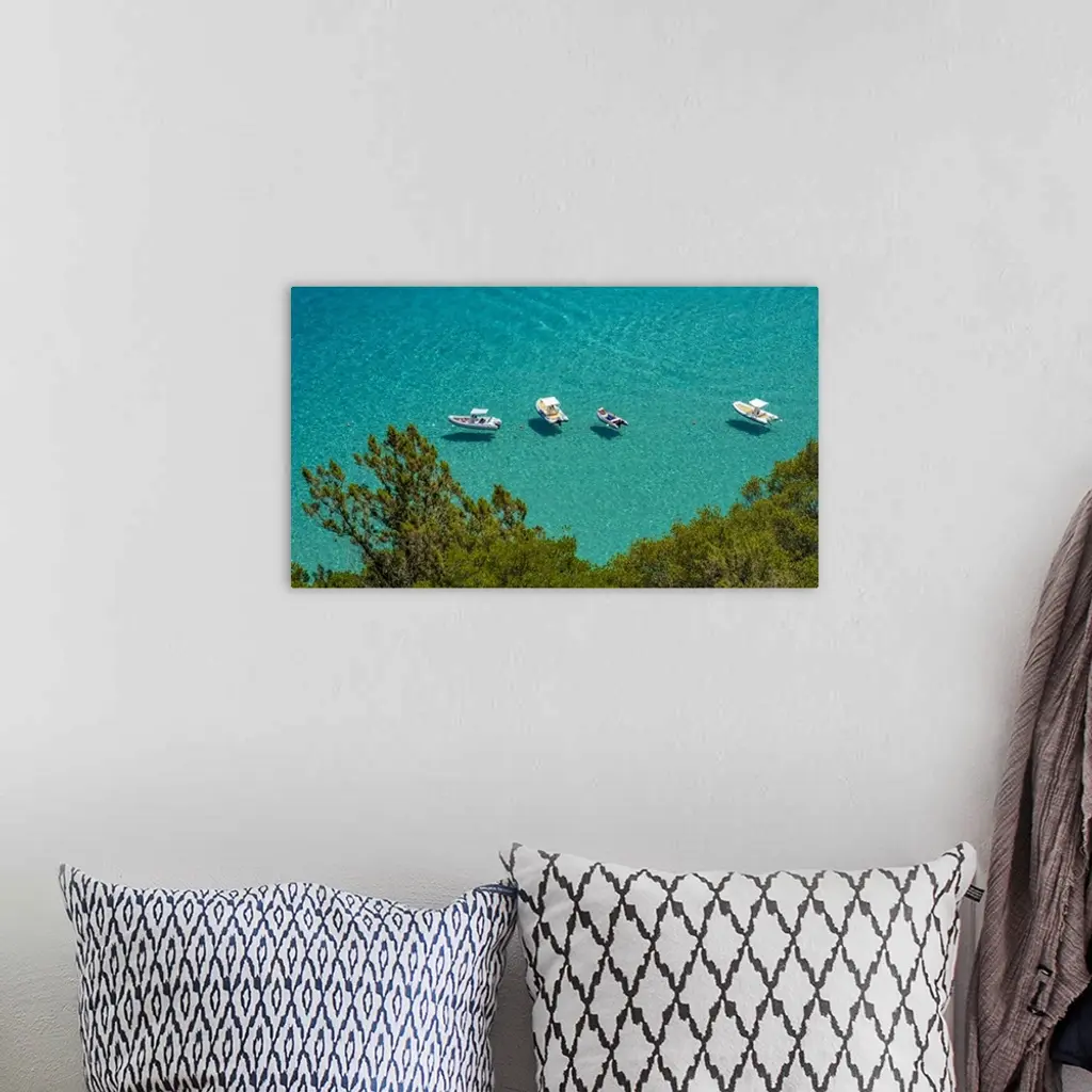 Europe, Italy, Sardinia. View of the boats in Cala Luna.