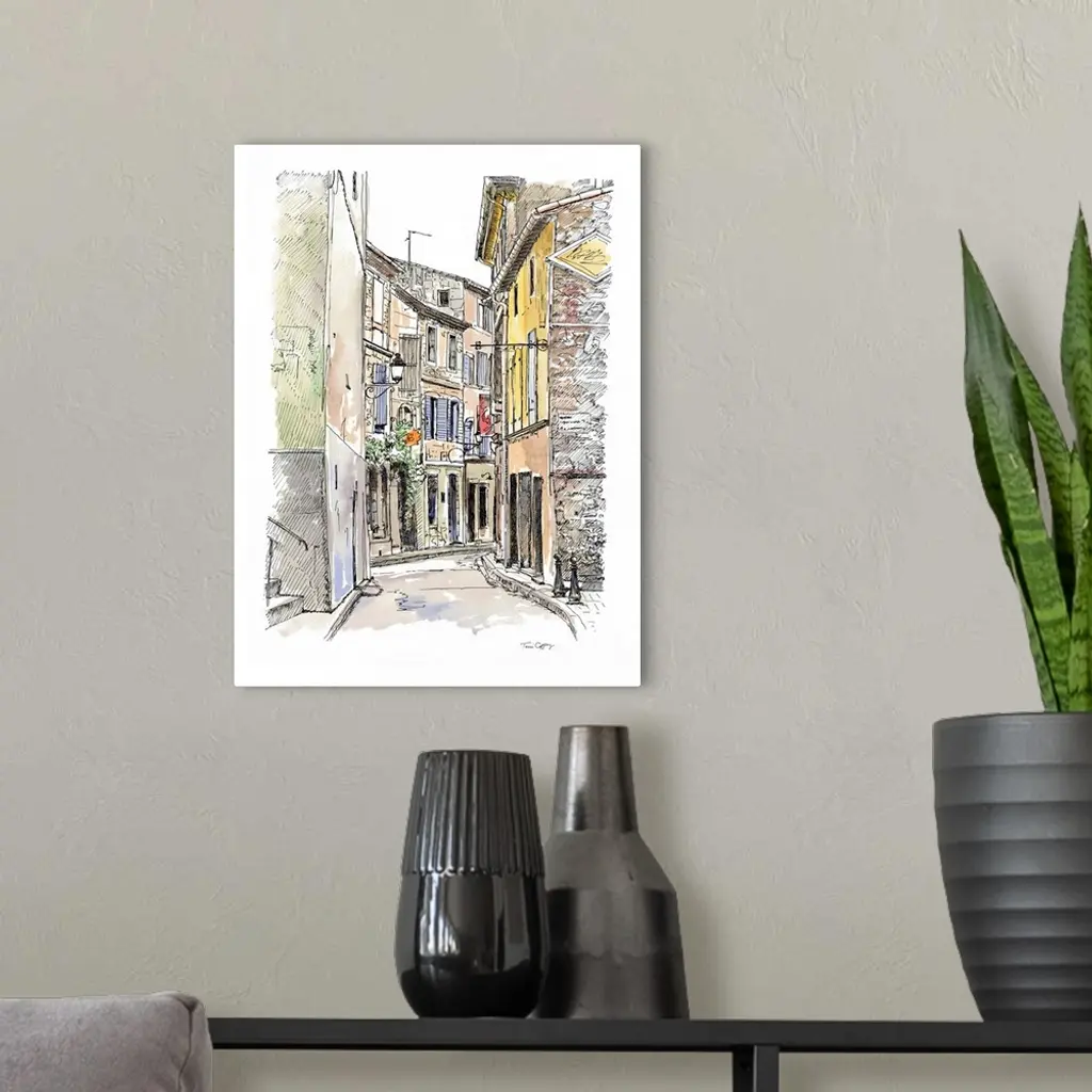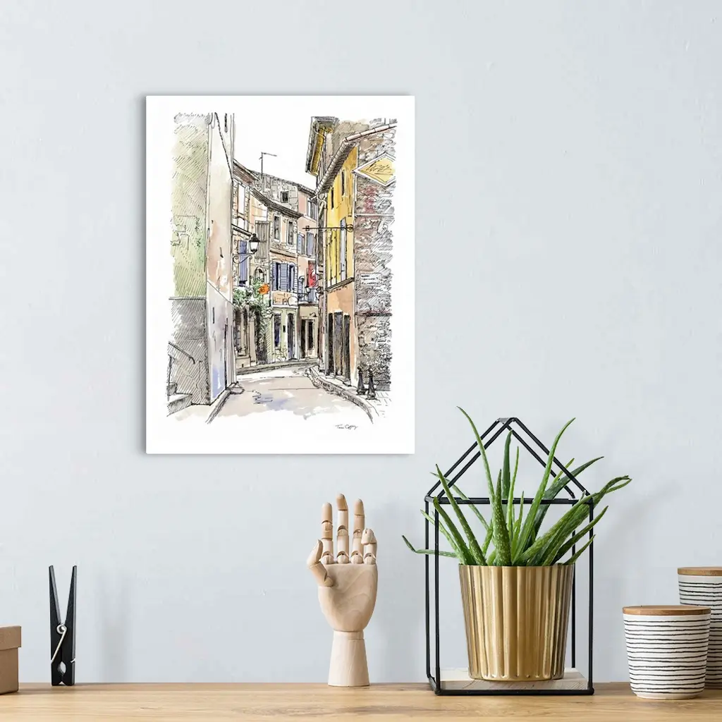 A lovely pen and ink depiction of a European back alleyway.
