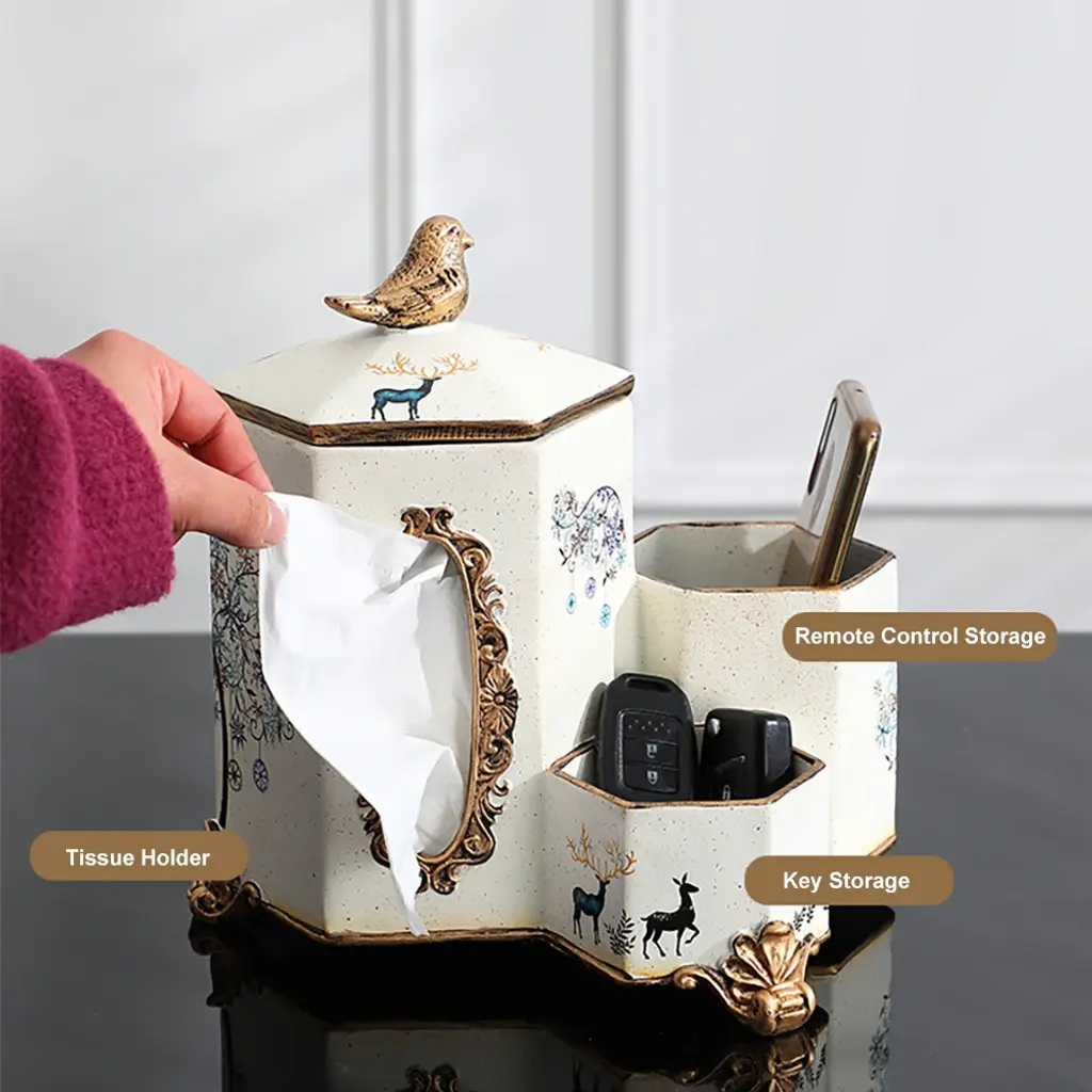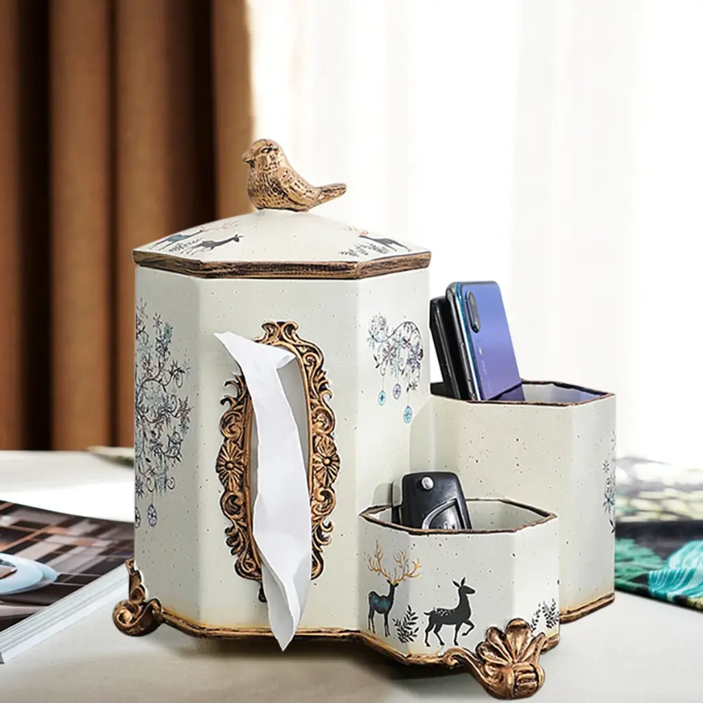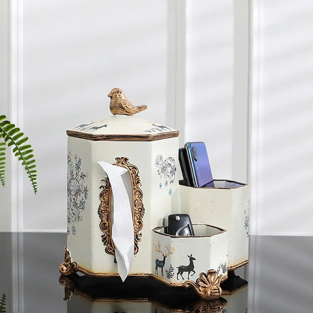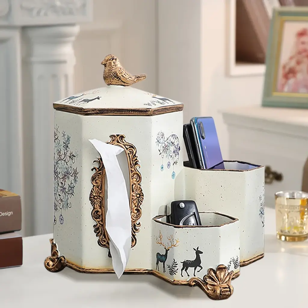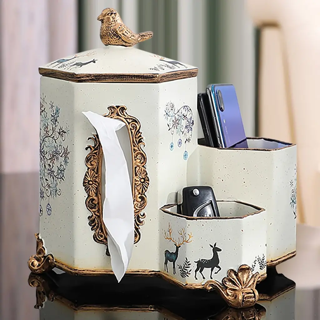 European-Style Living Room Desktop Tissue Holder Resin Remote Control Storage Box