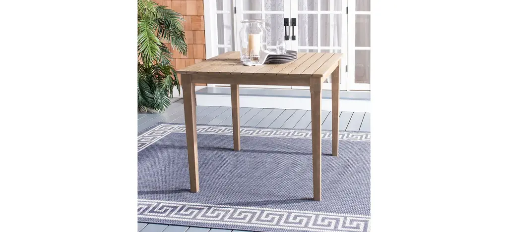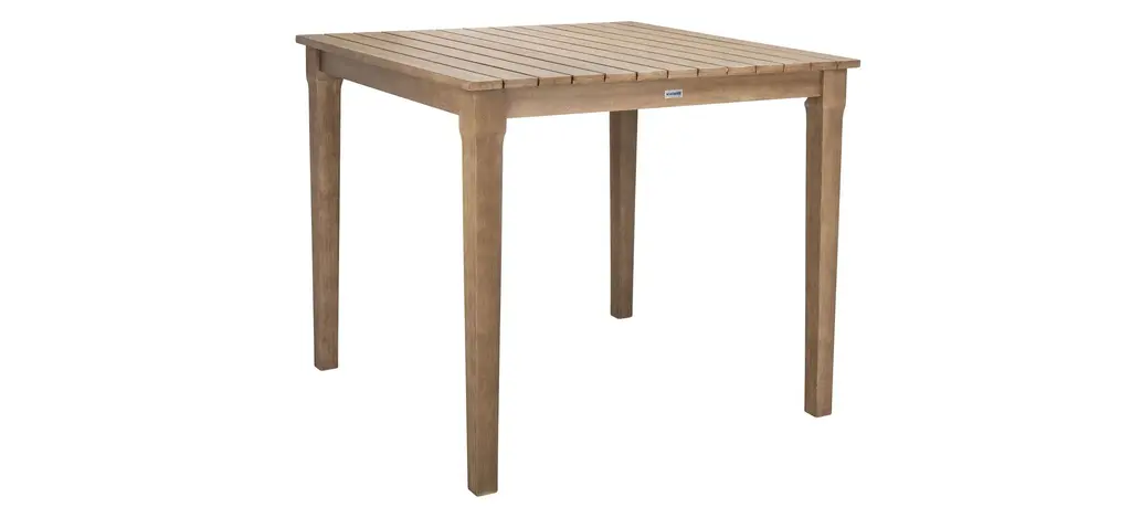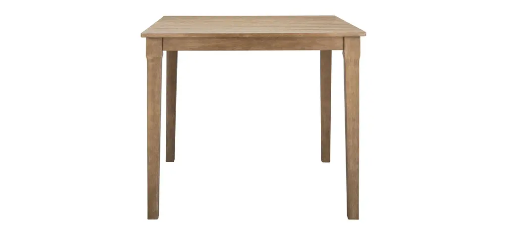The Eva patio bar table inspires all to gather round and celebrate life's luxuries. Inspired by the al fresco furnishings of coastal cafes, this solid outdoor bar table is made of natural eucalyptus with ample room for sitting on bar stools or standing round and regaling friends with tall tales.