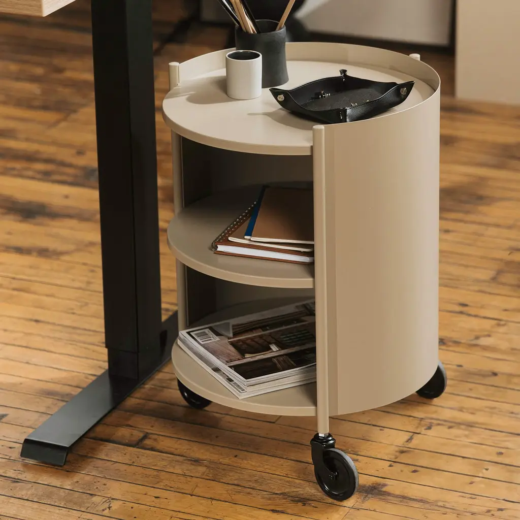 With its sleek cylindrical shape and three oversized wheels, Eve is a versatile essential crafted from durable, powder-coated steel. It’s made by Ferm Living, a Danish design brand known for its strong Scandinavian aesthetic and sustainable techniques.