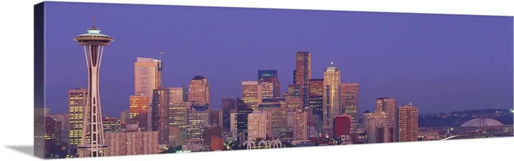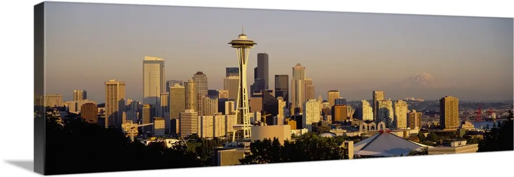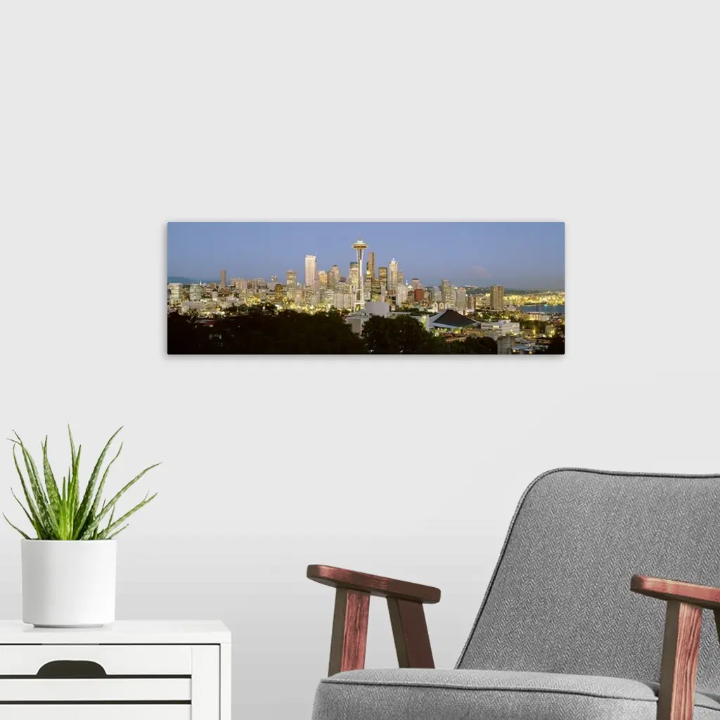 Evening skyline Seattle w/Mt Rainier WA USA wall art for home and office decor. Discover canvas art prints, photos, mural, big canvas art and framed wall art in GreatBigCanvas.com's varied collections.