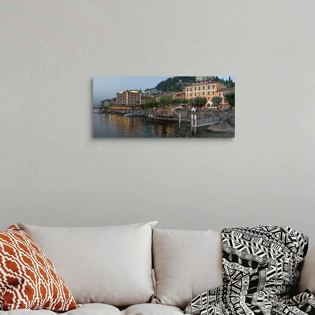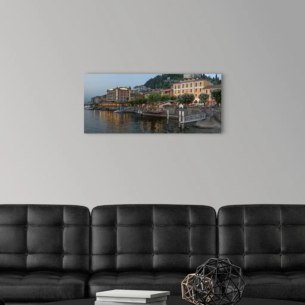 Evening view of waterfront at Bellagio, Lake Como, Lombardy, Italy wall art for home and office decor. Discover canvas art prints, photos, mural, big canvas art and framed wall art in GreatBigCanvas.com's varied collections.