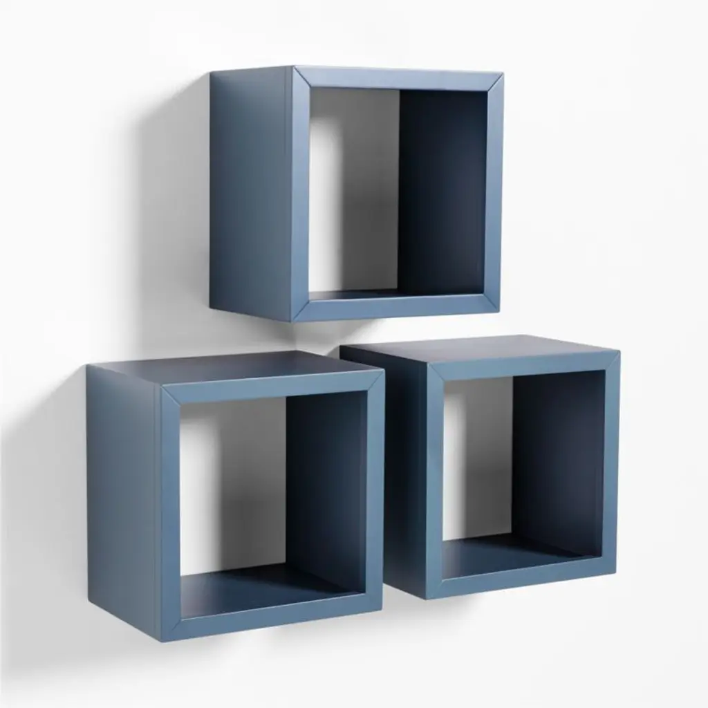 Ever Simple Slate Blue Wood Floating Cube Shelves, Set Of 3