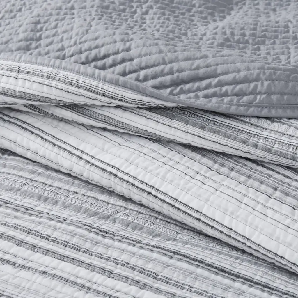 This quilt set brings an extra layer of warmth that's great when it's chilly and still breathable when it isn't. It includes a quilt and two matching pillow shams (one for the extra-long twin version). Made from yarn-dyed cotton, it features straight-line stitching and a gray-and-white striped pattern that's neutral enough to work with a variety of styles and color palettes. Whenever this set needs a refresh, simply toss it into the washing machine for a quick clean.