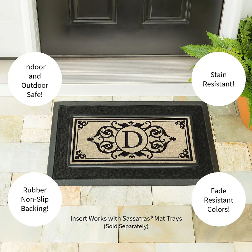 Evergreen Cambridge Monogram Burlap Sassafras Indoor Outdoor Switch Doormat Letter D 1'10"x10" Brown