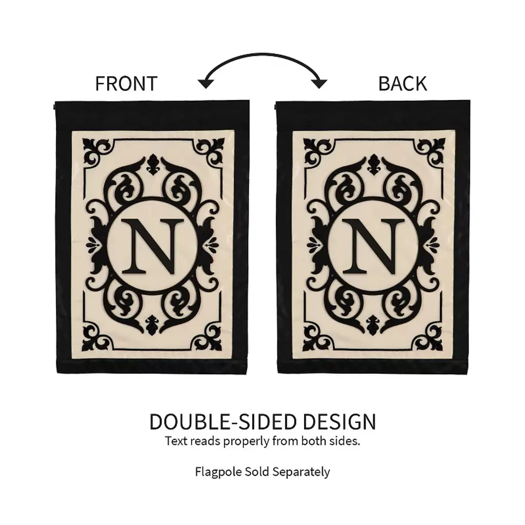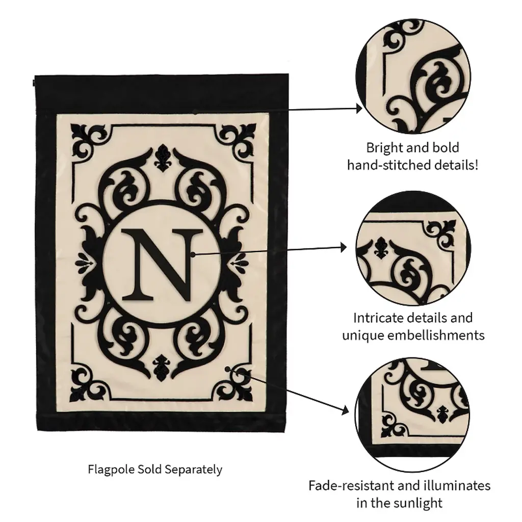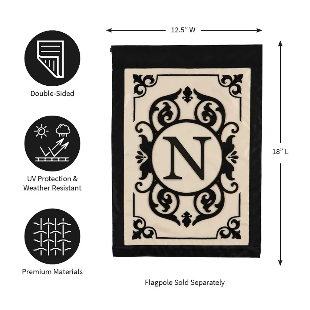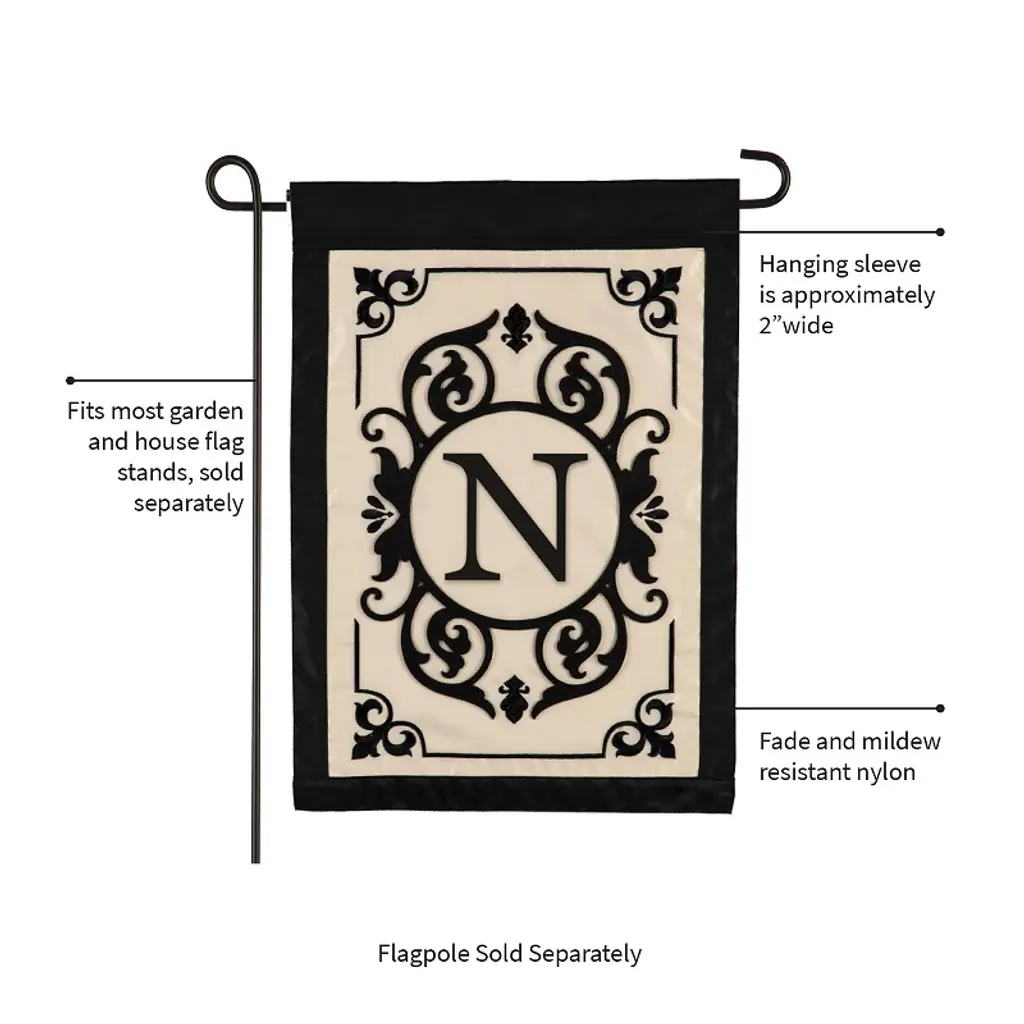 Evergreen Flag Cambridge Chic Letter N Monogram Applique Garden Flag - 12.5" Wide X 18" High