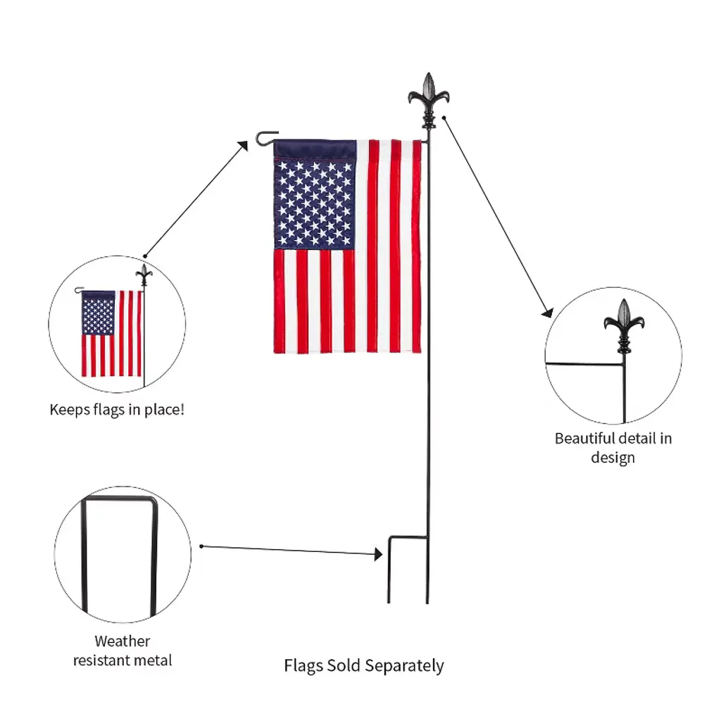 Featuring a black cast-iron fleur de lis finial, this Mardi Gras flag pole stand will add a bold and classic look to flag displays. Made with sturdy materials, this stand has an h-stake for easy display. Flags and base stands are sold separately. At Evergreen, we are committed to producing premium, quality products to bring a touch of color and personality to your home. We respect and celebrate the uniqueness in everyone by offering one of the world's largest selections of home and garden decor.