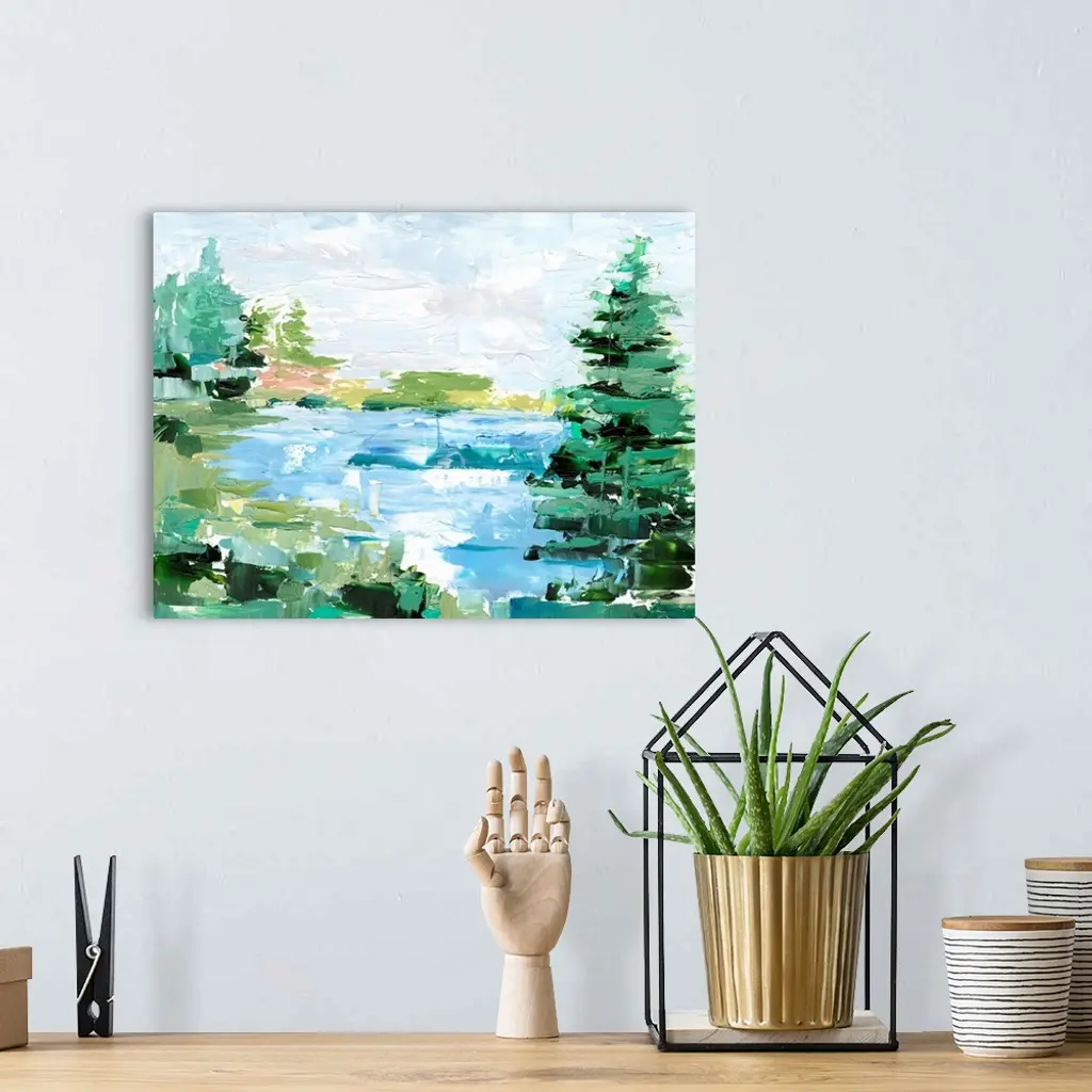 Evergreen Lake II wall art for home and office decor. Discover canvas art prints, photos, mural, big canvas art and framed wall art in GreatBigCanvas.com's varied collections.