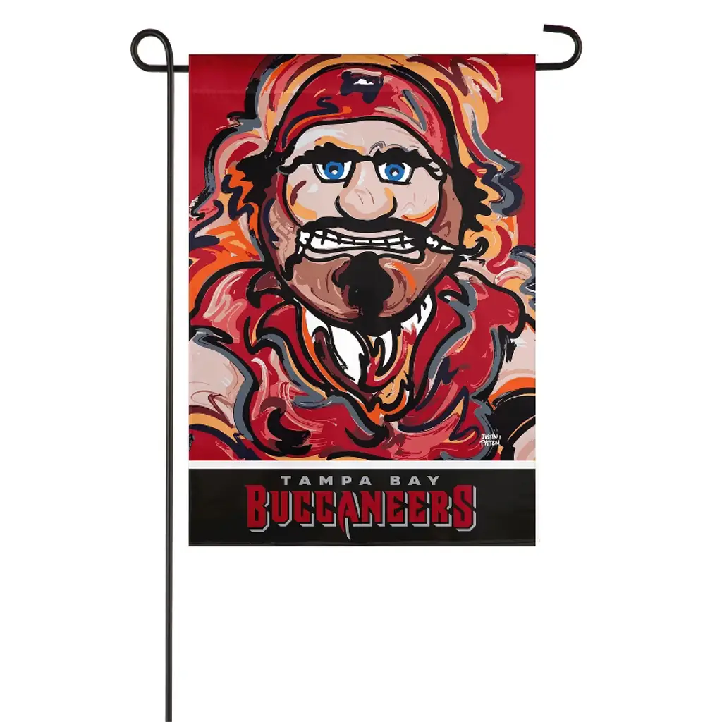 This suede garden size flag showcases an original work of art by painter Justin Patten, featuring a whimsical take on the mascot trend for a more artisan look that everyone will love to show support for their team.