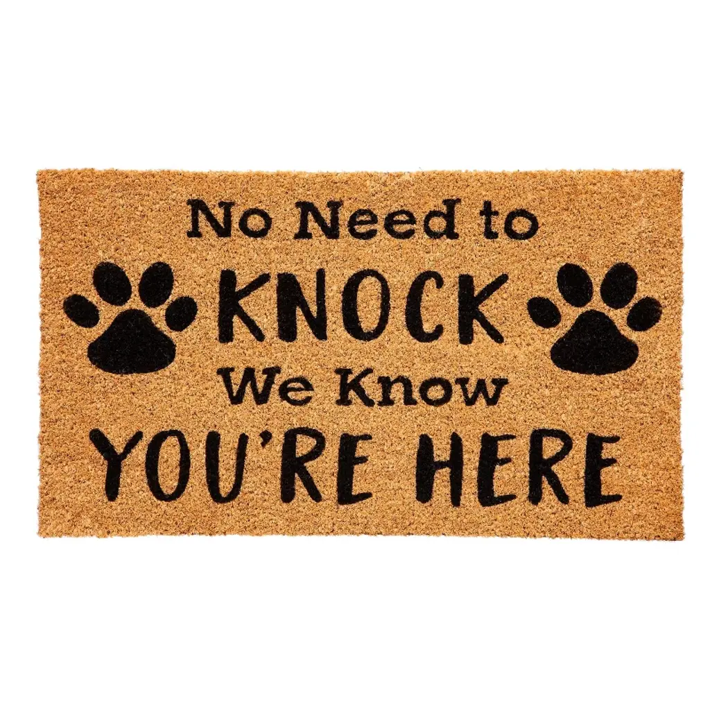 This minimalistic coir mat is the perfect addition to any dog-crazy customer! The paw-print accented design has a fun message that will make any guest smile. Crafted from coco husk fiber, the eye-catching mat is natural and eco-friendly. Ideal for high-traffic areas, the mat traps dirt and debris to prevent messes from being tracked into homes. Designs are printed directly on the mats with fade-resistant dyes. Since the mat is crafted from natural coir, some shedding is to be expected. Shake off excess fibers or use a soft brush to gently sweep.