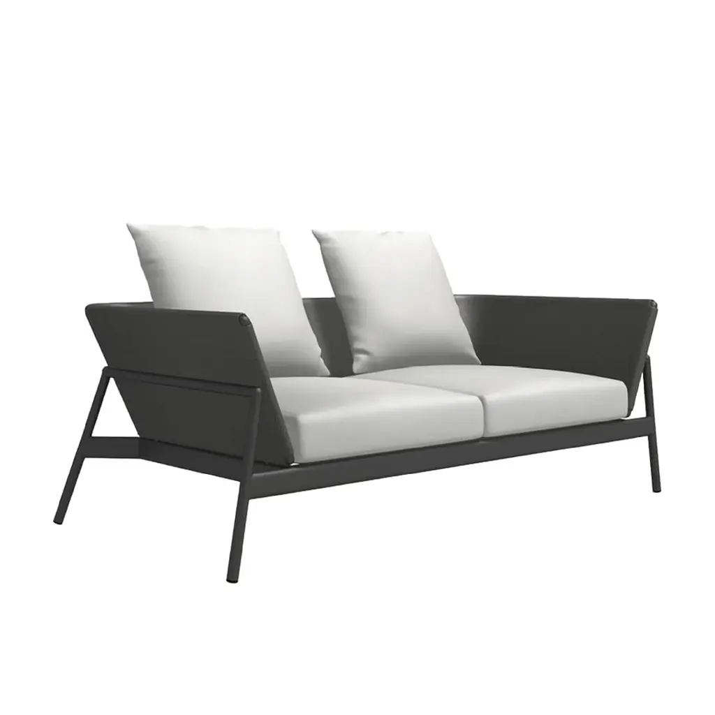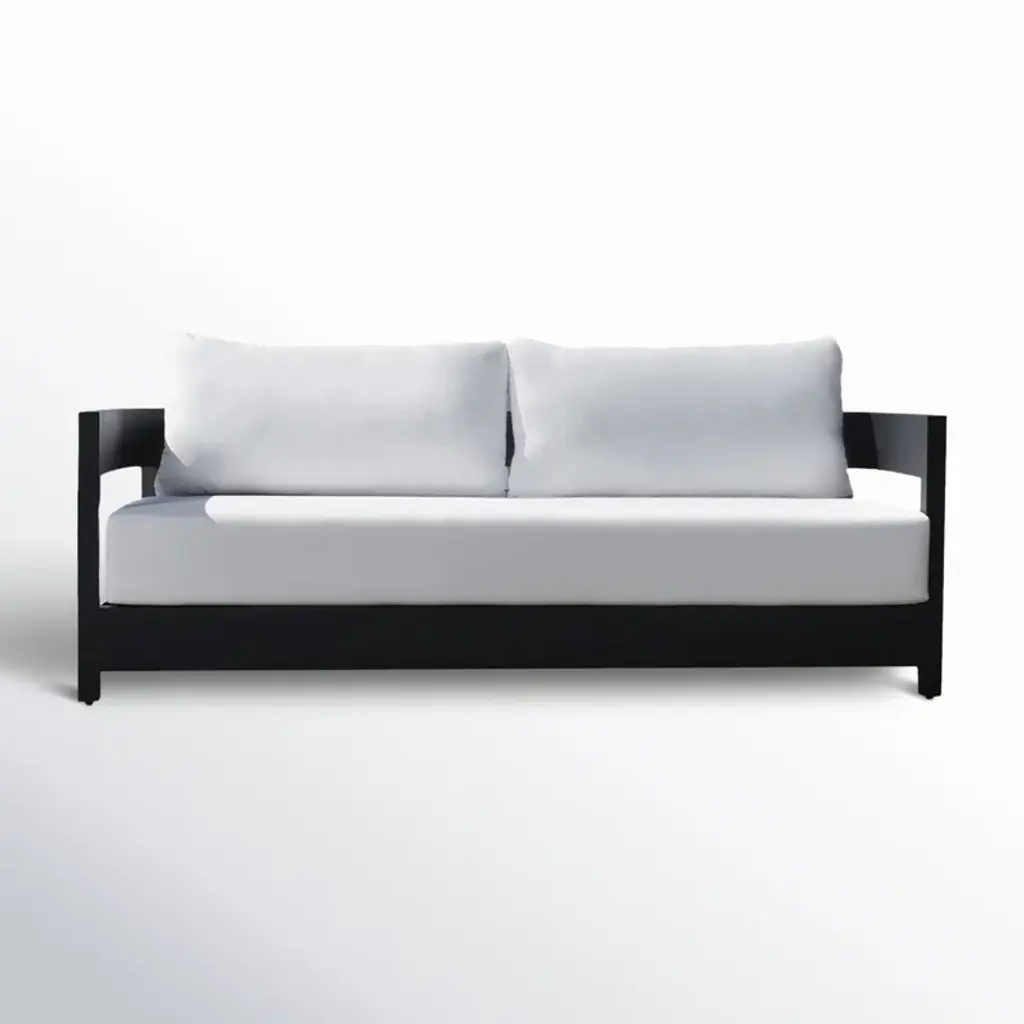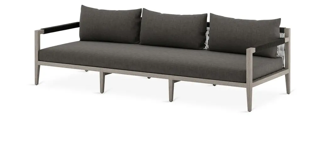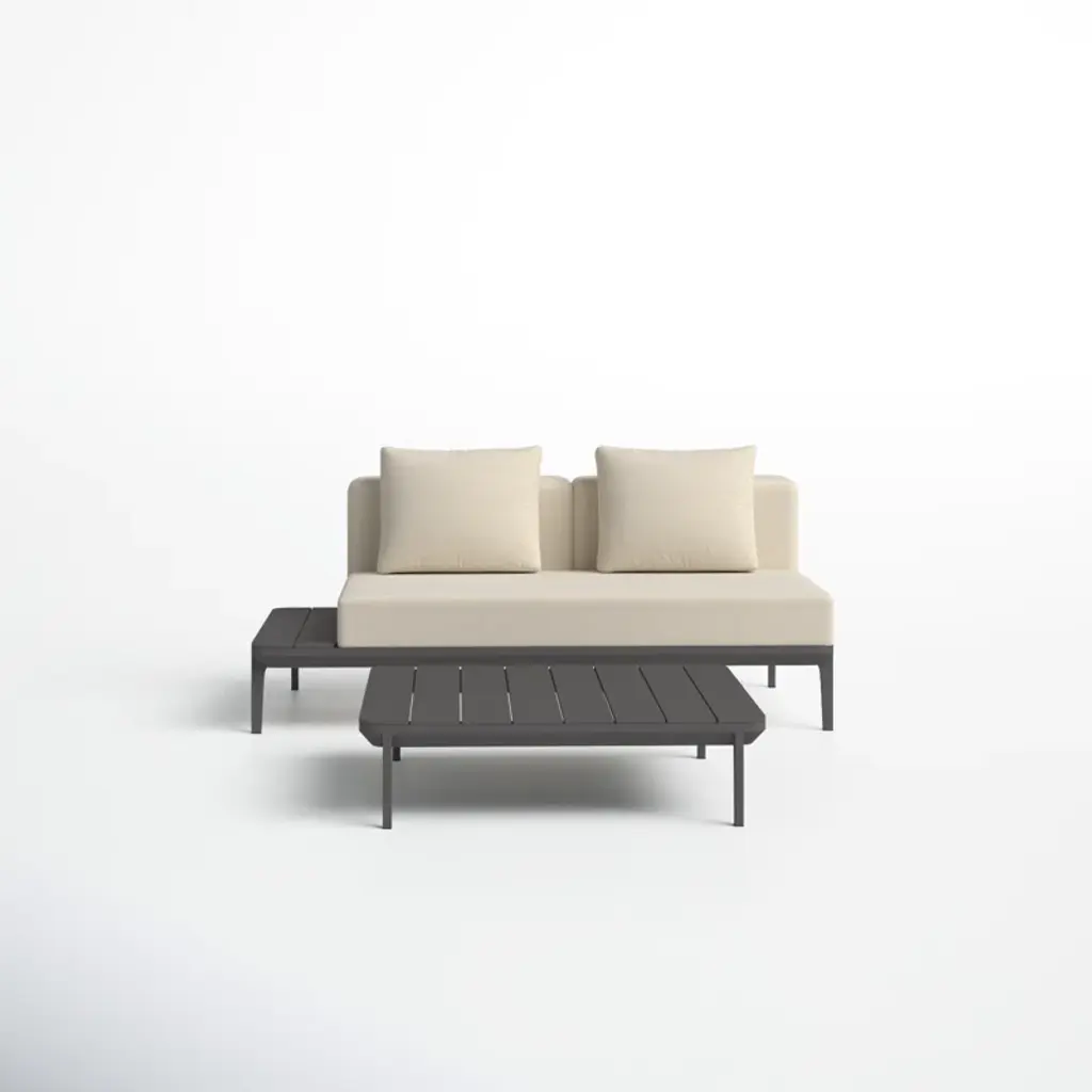 Create a casual, breezy retreat in your backyard or on your patio with this outdoor sofa and coffee table set. Designed with comfort in mind, it's a perfect edit to your main hangout space. Durable powder-coated aluminum comes in a sleek black finish, while Sunbrella® seat cushions and pillow backs are padded for just-right support. The muted color palette makes it easy to mix and match with your signature style.