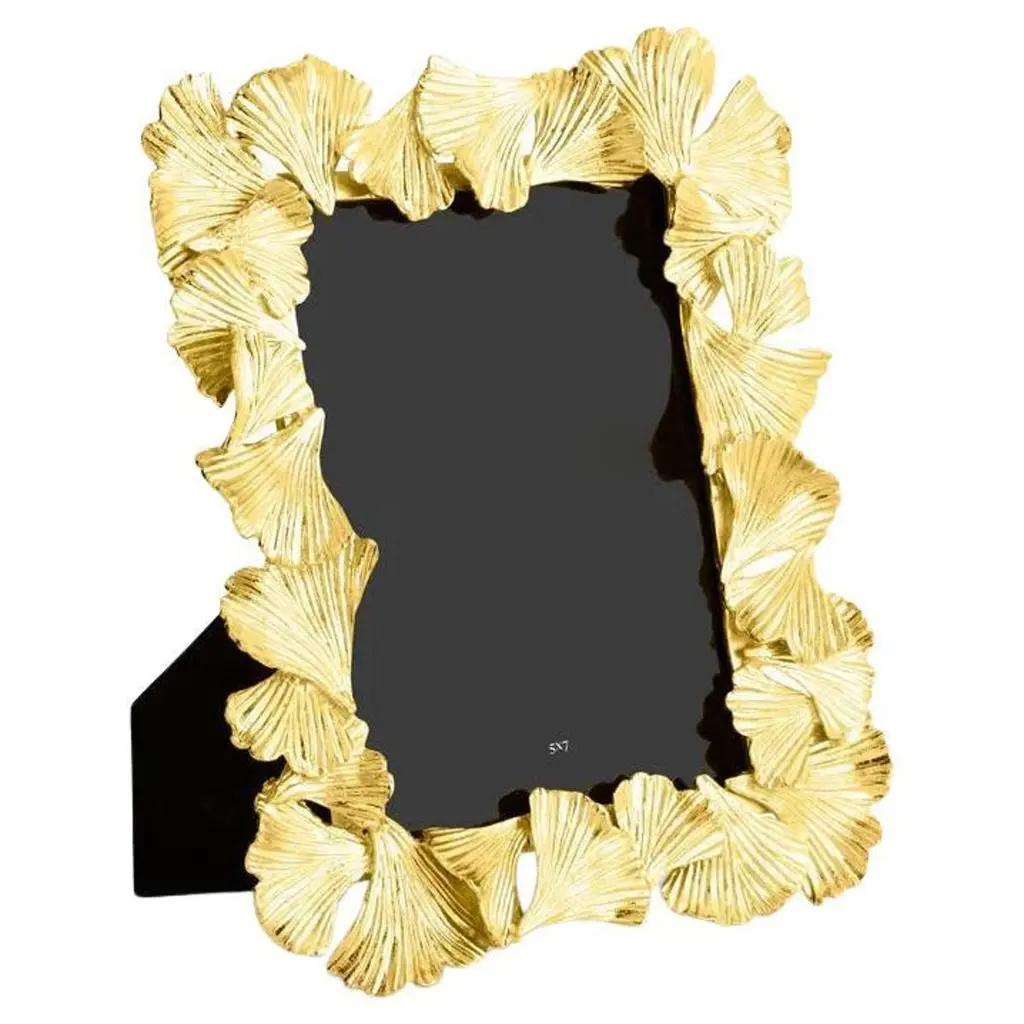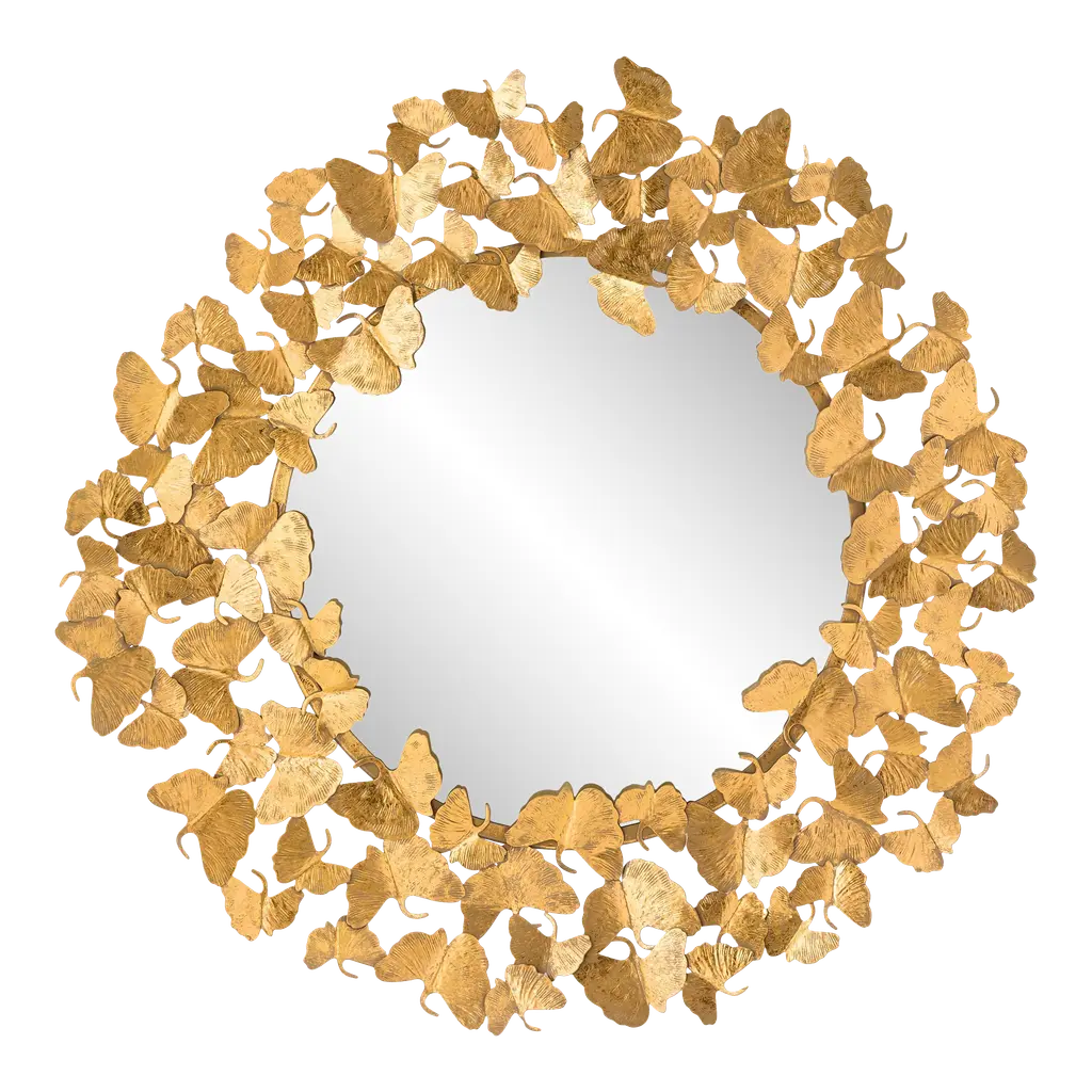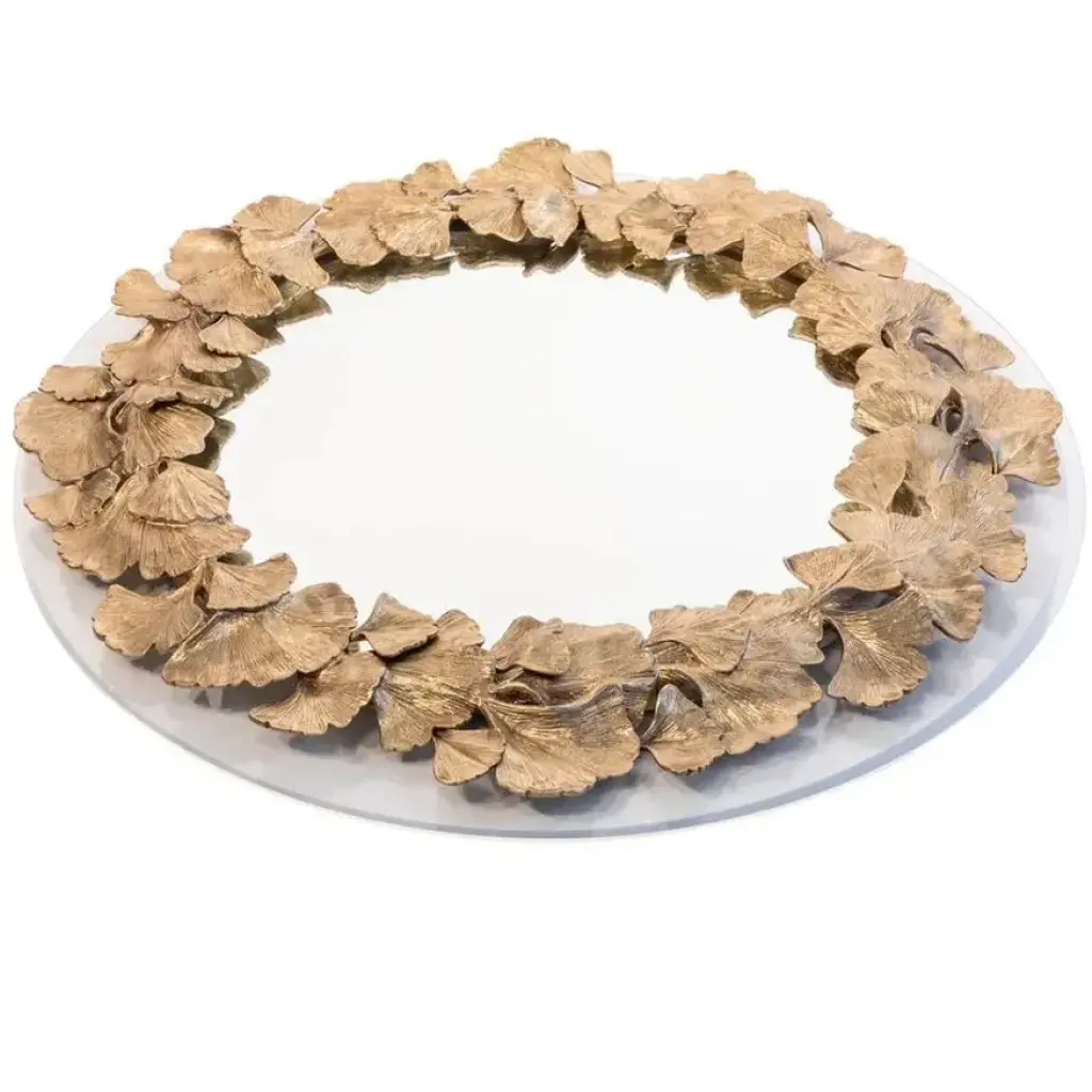 Gingko leaves cast from shining warm brass encircle the frame of this round wall mirror. A perfect companion to our Ginkgo leaf table, this lush botanical piece blends the soft organic shapes of nature with the edge of contemporary design.