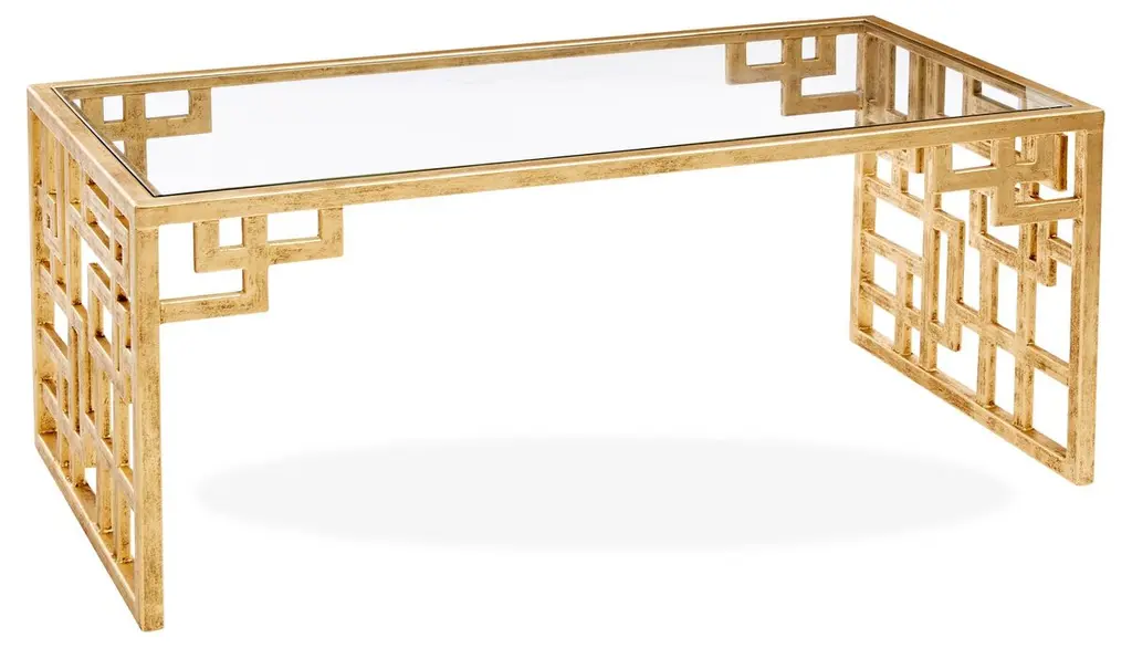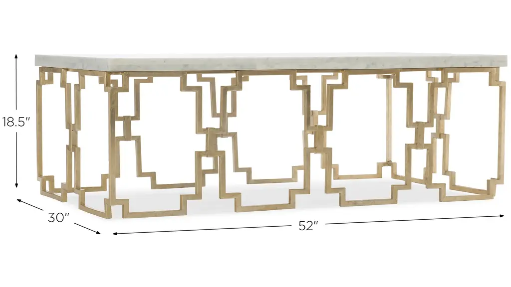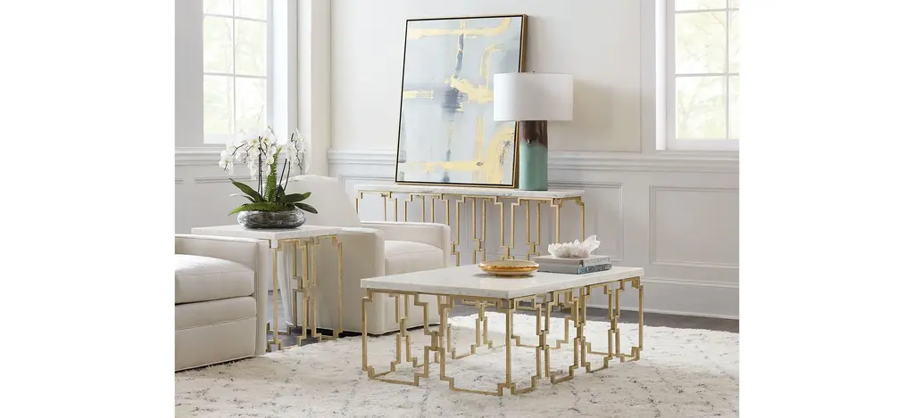 With delightful design details, the Evermore cocktail table has a light-and-airy geometric metal base in a soft gold finish, complemented by a Kalala Marble top. Sure to be a conversation piece in any living space.