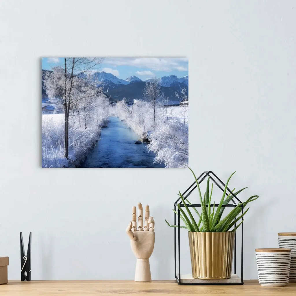 I stopped to take a picture of this blue mountain river passing between completely snow-covered white trees. I was enchanted by this scene that I decided to remain in total silence for an hour to watch the water flow under the bridge from where I photographed.