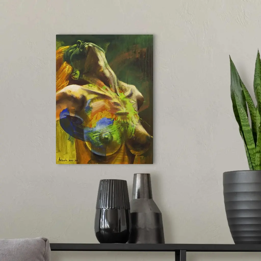 'In life everything can get messed up if we are not ready to face the risks,' believes Aricadia. Mixing oils with acrylics, the Javanese artist creates a chaotic sense of harmony with an intense palette of colors. 'The disorganized colors express this woman's present condition.'