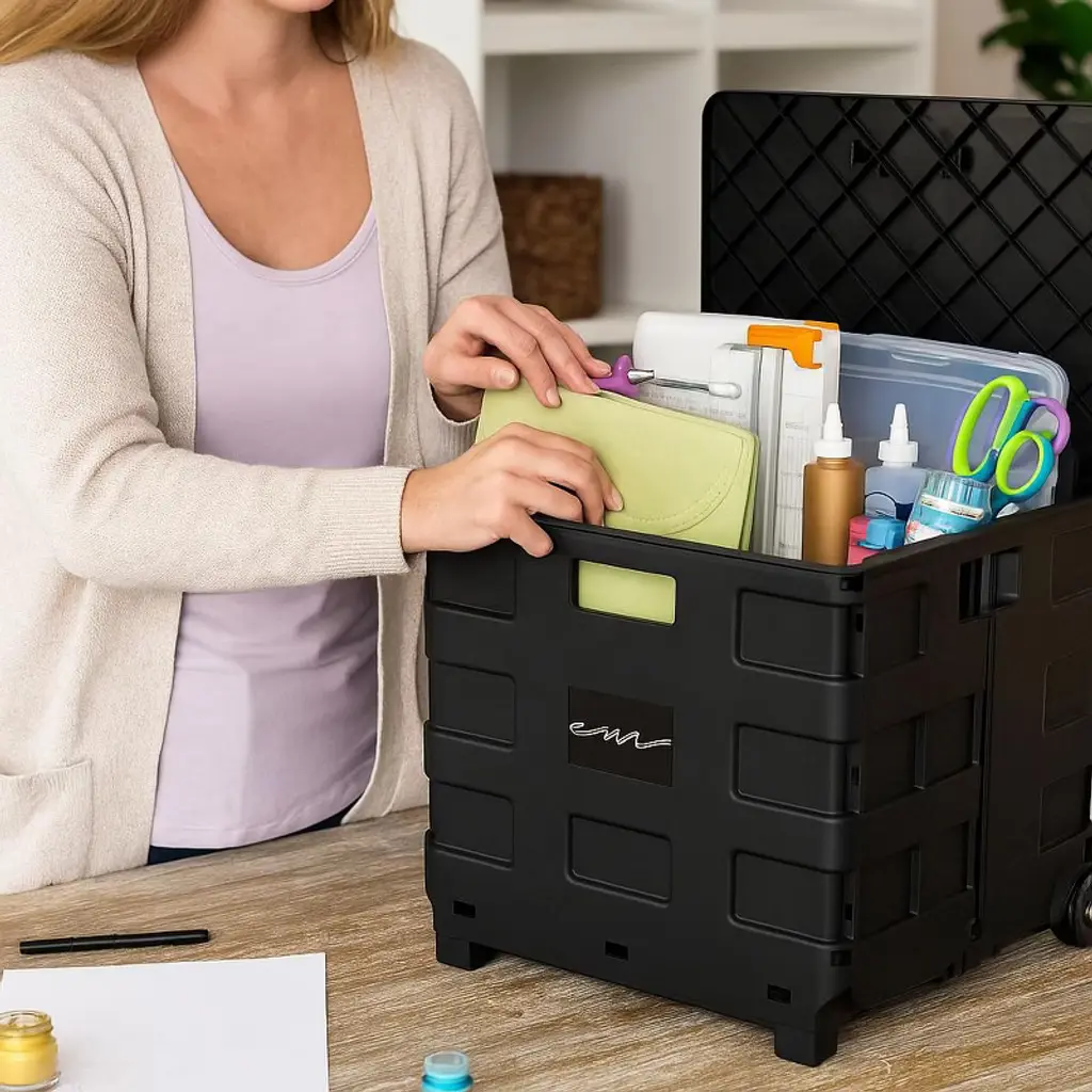 Everything Mary Collapsible Rolling Craft Cart With Lid – Black