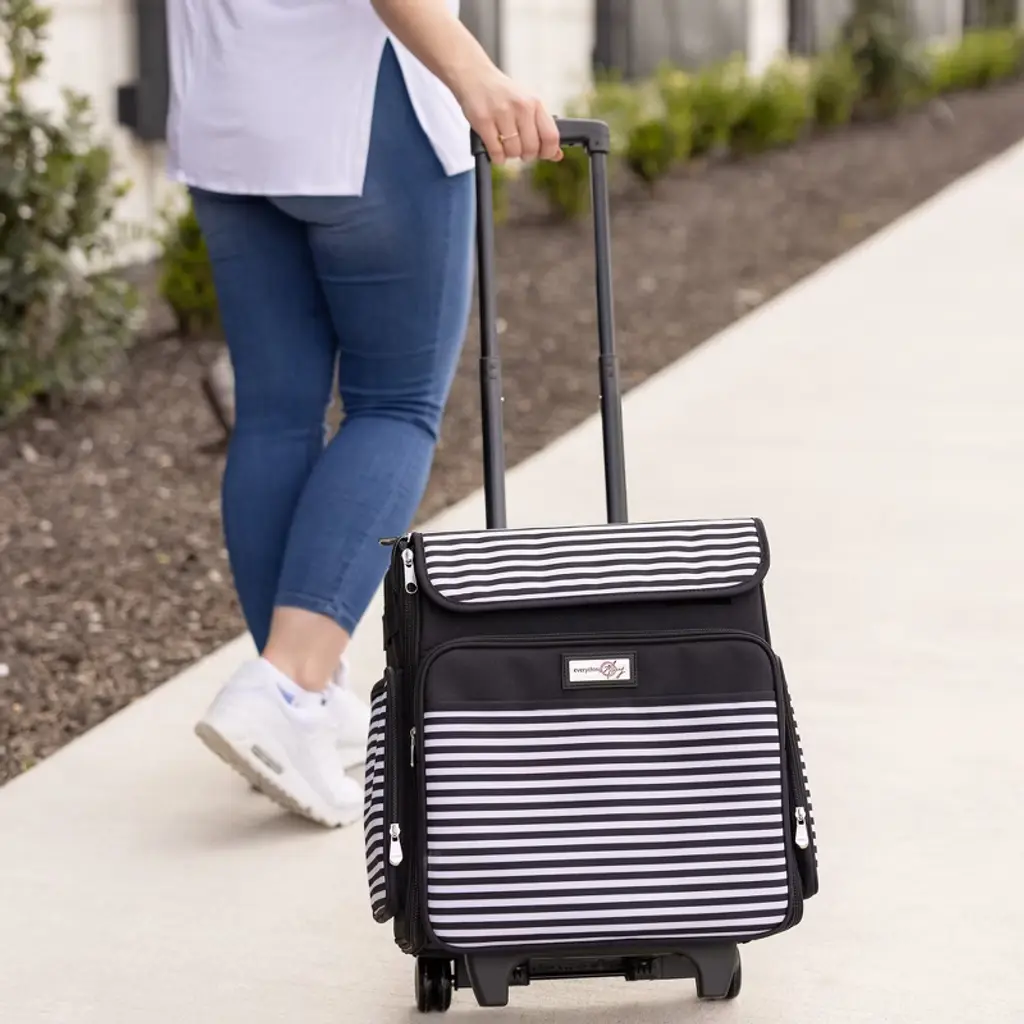 Everything Mary Collapsible Rolling Scrapbook & Featherweight Case, Black & White Stripe