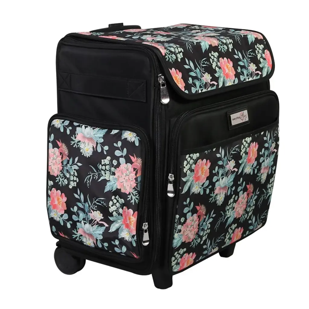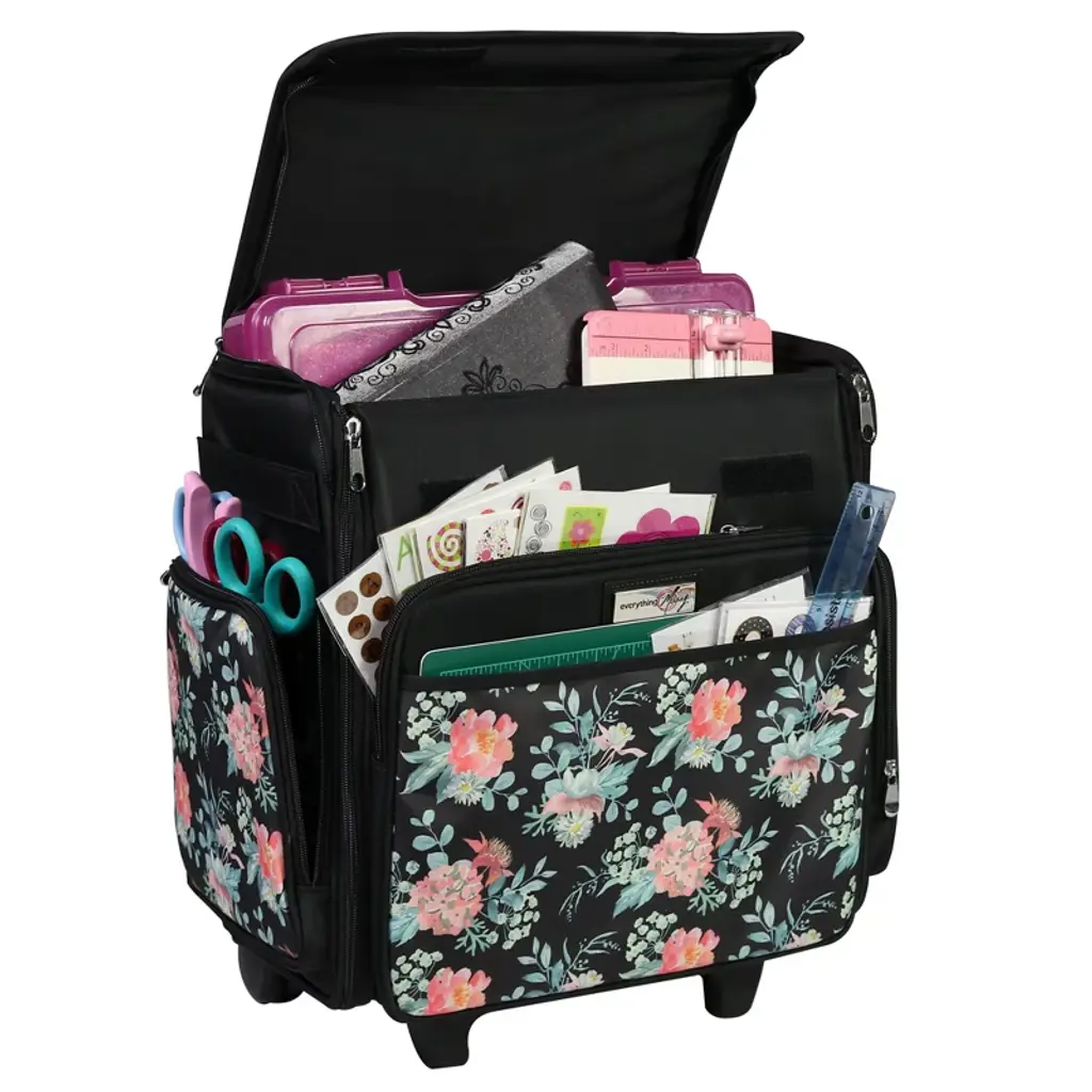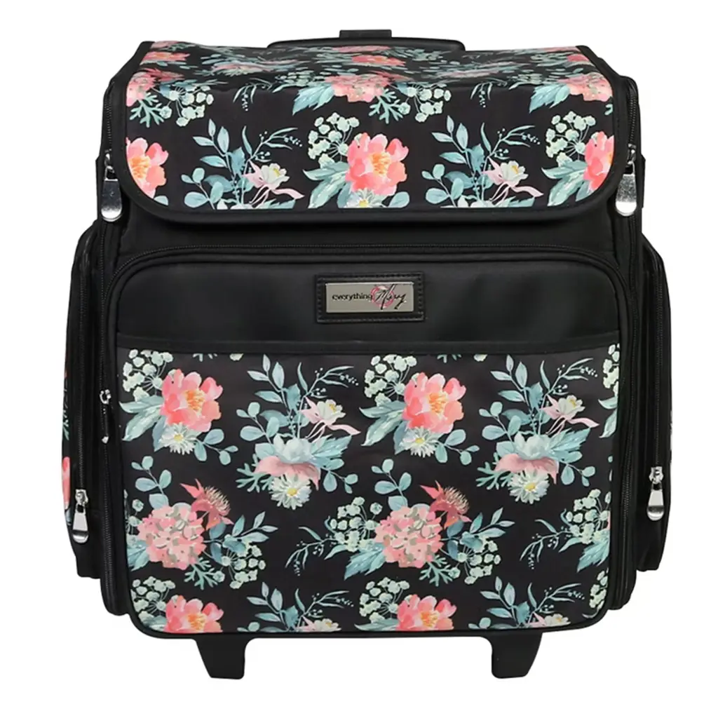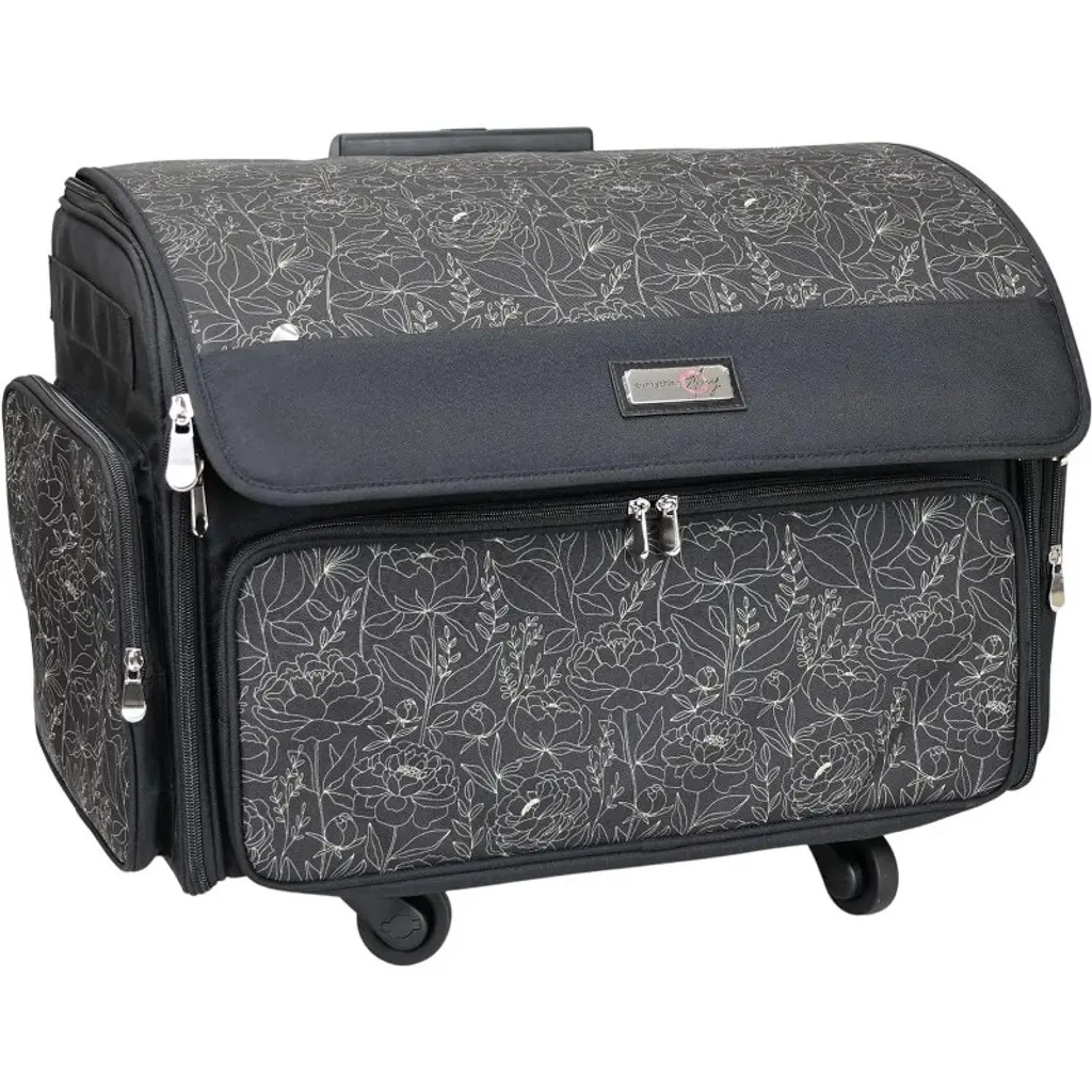 Everything Mary Collapsible Rolling Scrapbook & Featherweight Case, Black Flowers