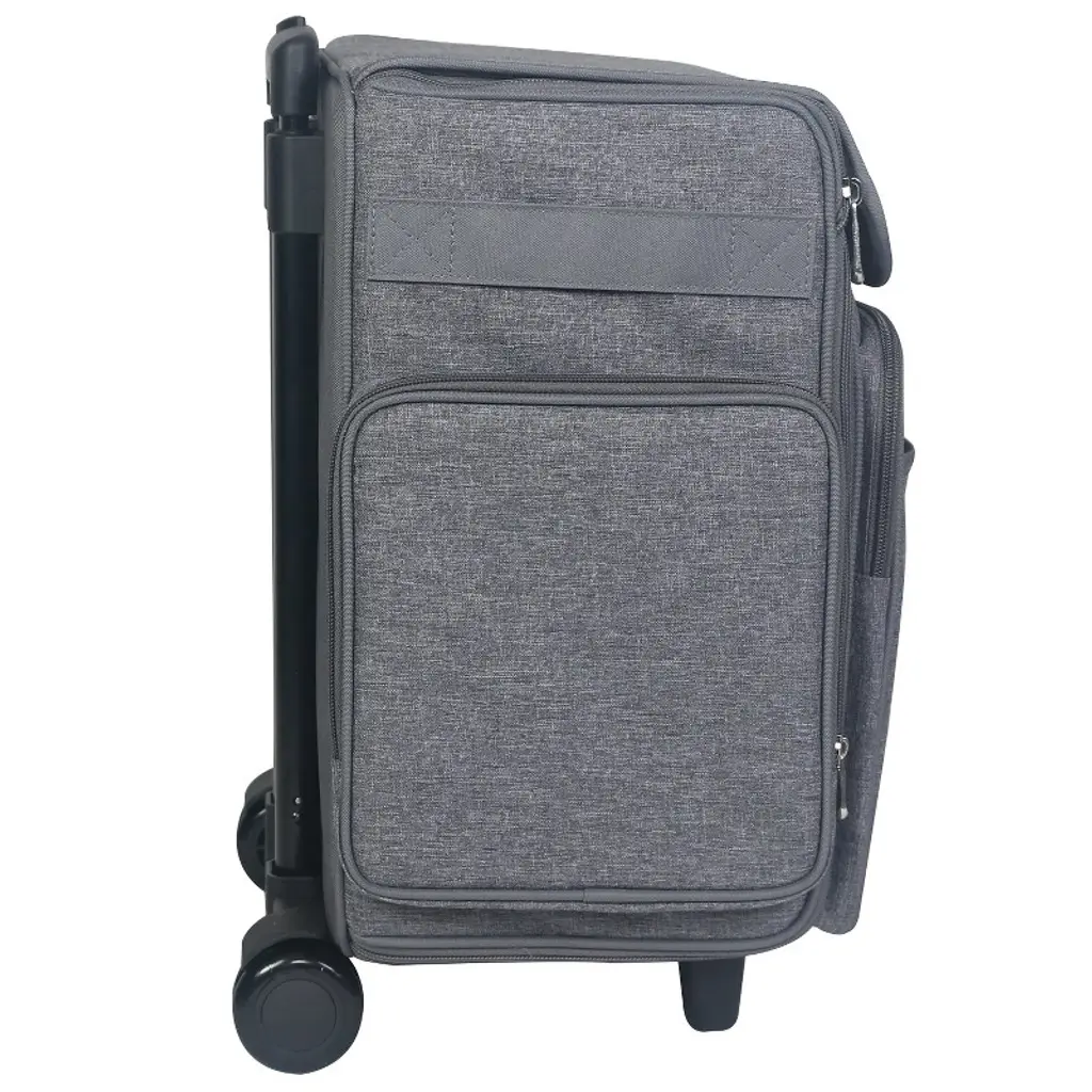 The Everything Mary Collapsible Rolling Craft Bag is the ultimate storage solution for any storage need you may have. This rolling organizer cart is constructed with durable polyester and features premium zippers, piping, and an Everything Mary emblem. 17 total storage spaces are built into this scrapbook storage case for all of your tools, sewing notions, or other supplies. The main compartment on this rolling craft organizer is perfect for scrapbooking IRIS boxes, paper, crafts, containers, and so much more! This scrapbook rolling tote features a telescoping locking handle and a durable wheelset for secure craft storage. The Everything Mary Collapsible Rolling Craft Bag was made with crafters in mind. Patent-Approved Folding Design (US D963,343 S): Our product's patented folding design ensures top-tier innovation and quality, meeting the highest industry standards for exceptional performance and reliability.