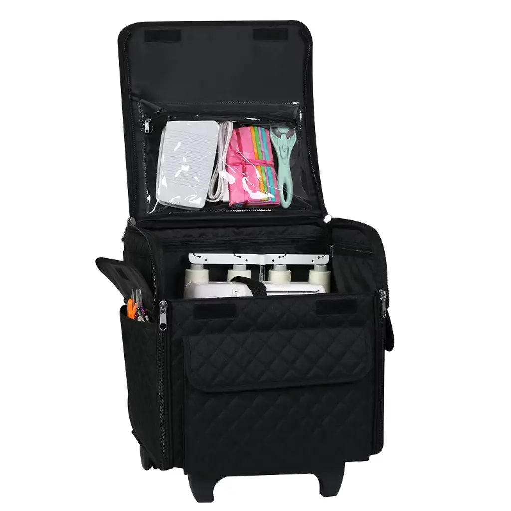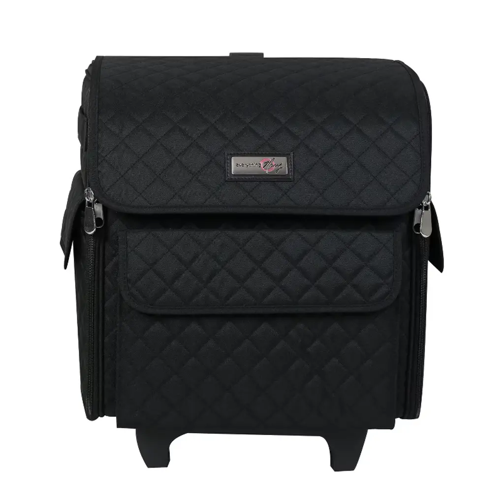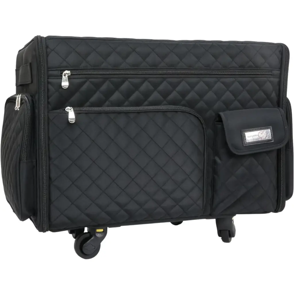 Everything Mary Collapsible Rolling Serger Machine Case, Black Quilted