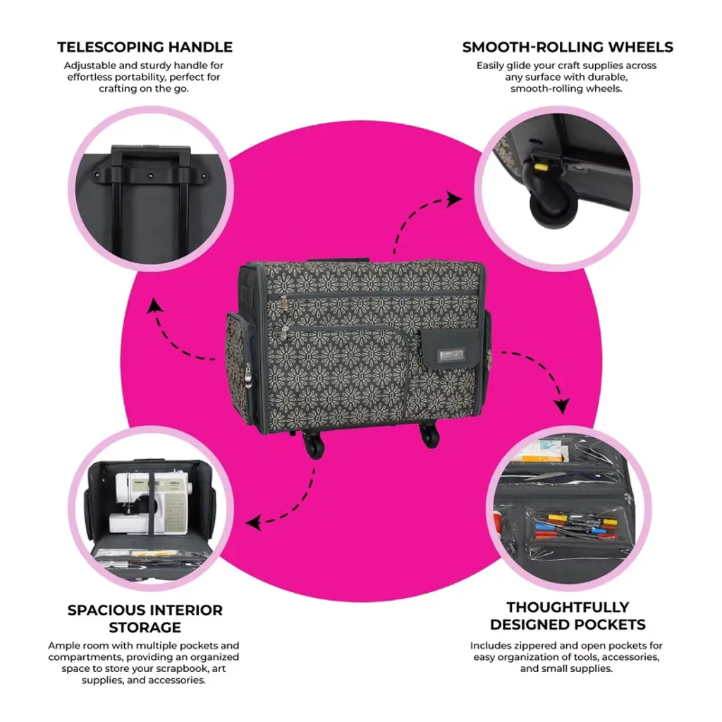 Embark on your creative journey with the Everything Mary XL Roller Flat Top, designed to offer both flexibility and ease. Whether you're crafting at home, attending workshops, or traveling for inspiration, this organizer bag serves as the perfect companion. With a spacious interior that accommodates your art supplies, tools, and materials, it helps you stay organized and ready for any project. The smart, sturdy design ensures your essentials are always secure, making it the ideal solution for any crafting adventure. The XL Roller Flat Top will become your trusted ally, whether you're unpacking for a crafting day at home or taking your projects with you on the go. Interior Dimensions: 20L x 11D x 14HExterior Dimensions: 23L x 12.75D x 17.75H