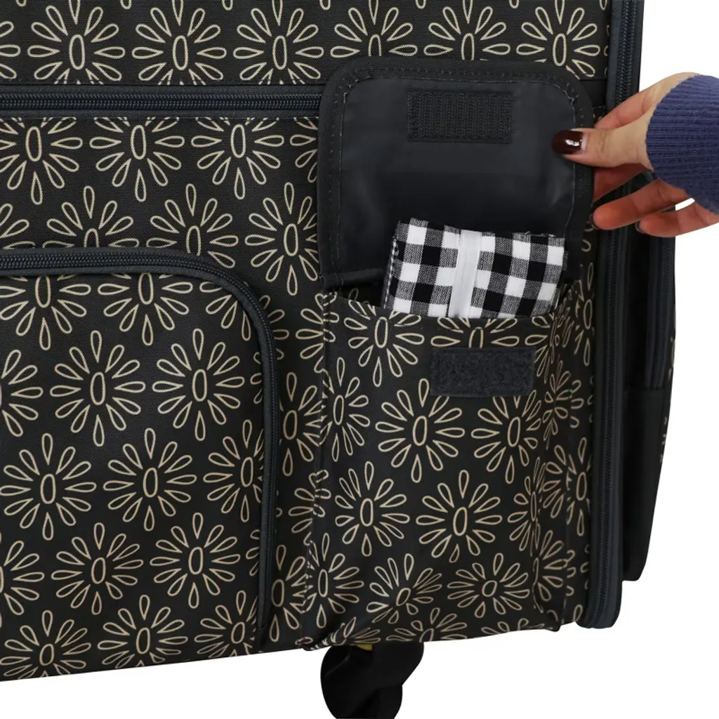 Everything Mary Flat Top Xl 4 Wheel Collapsible Rolling Sewing Machine Storage Case, Tan Floral