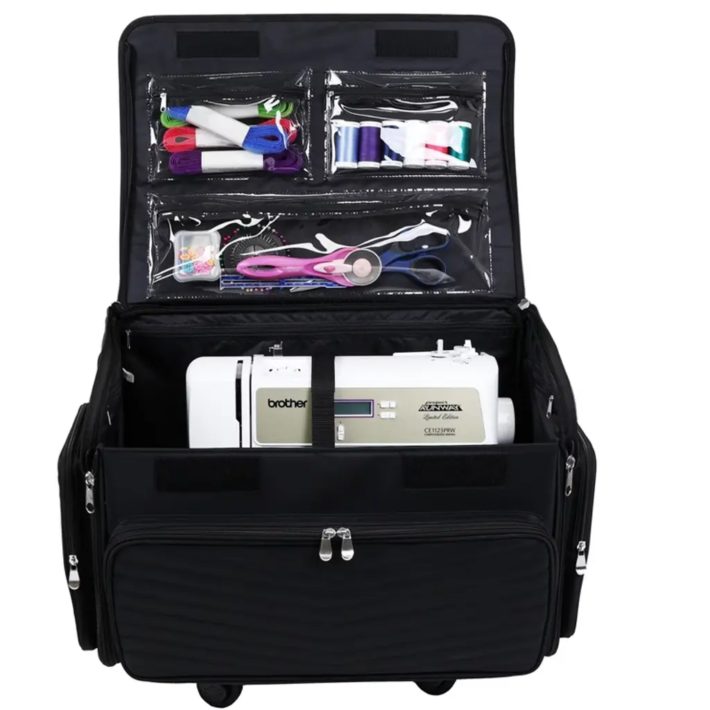 Everything Mary Xl 4 Wheel Collapsible Rolling Sewing Machine Storage Case, Black