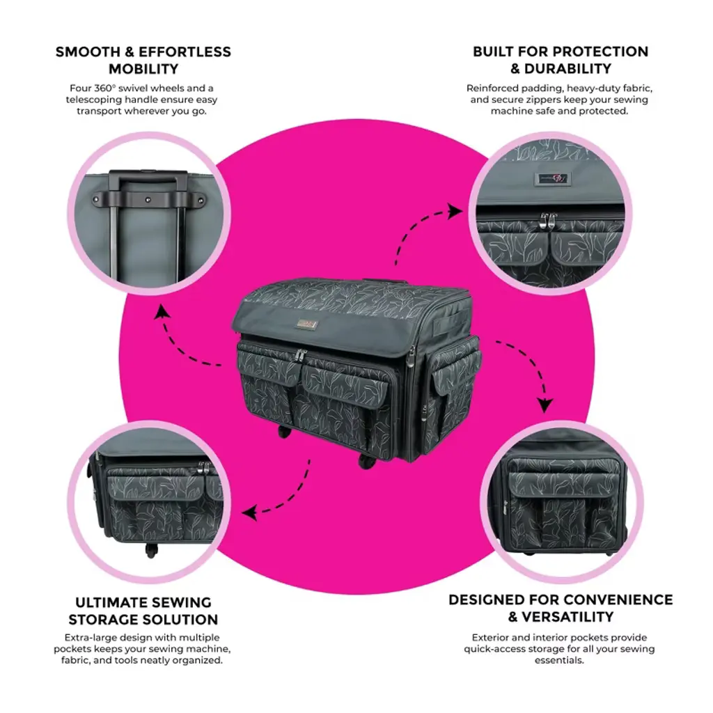 Everything Mary Xxl 4 Wheel Collapsible Rolling Sewing Machine Storage Case, Grey Floral
