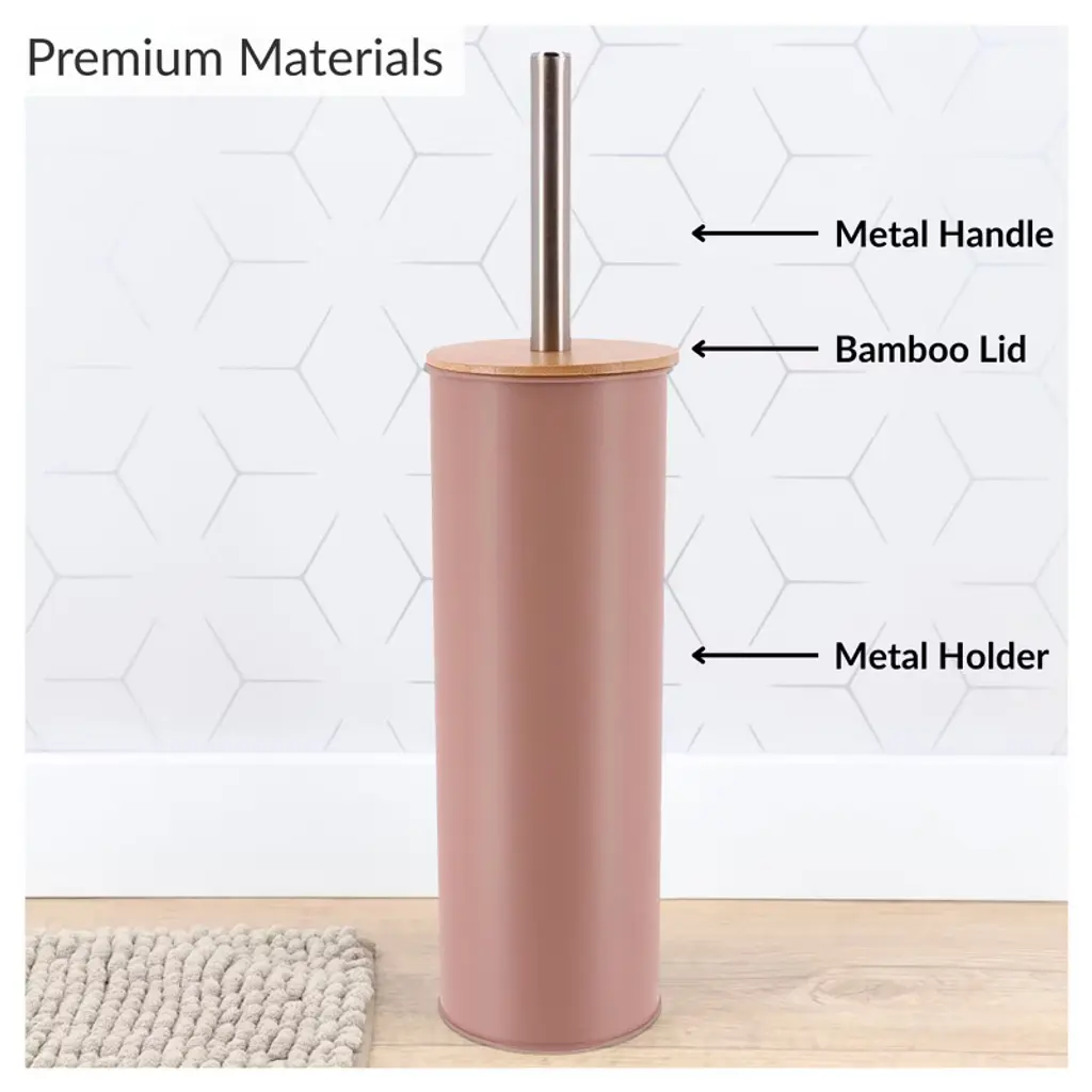Keep your bathroom clean and stylish with this modern Cappuccino Toilet Bowl Brush and Holder, featuring a bamboo lid and metal handle. Moreover, the elegant cylindrical design blends effortlessly into small spaces without cluttering up the floor. In addition, the compact dimensions of the brush holder make it perfect for guest bathrooms, apartments or tight corners. Furthermore, the closed holder hides the brush for a neat, organized look. You can keep a clean aesthetic while storing your brush out of sight. Also, the anti-splash bamboo lid on the toilet scrubber brush prevents drips and keeps the bathroom floor dry. Plus, the durable stainless steel handle offers a comfortable, stable grip. Similarly, the sturdy bristles are ideal for deep cleaning around the bowl and under the rim. Thanks to the easy-to-rinse materials of the toilet bowl cleaner brush, maintenance is quick and hassle-free. Equally important, the quick-dry interior prevents moisture build-up and keeps the brush ready to use. Plus, this toilet brush cleaner is available in 9 colors to match or complement your decor. With this toilet cleaner brush, your bathroom gets both form and function in one smart accessory.