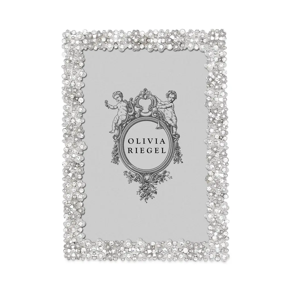 Beveled glass and hundreds of hand-set Austrian crystals add luster to Olivia Riegel's sophisticated Evie Collection.