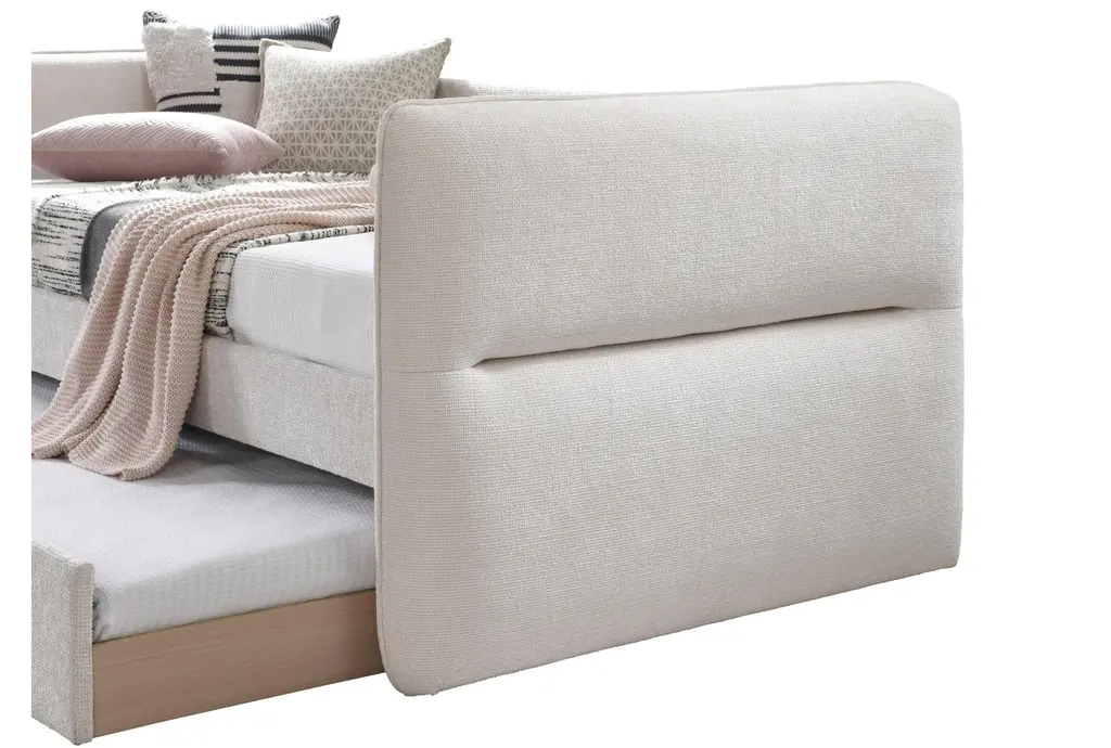 Evie Oatmeal White Fabric Twin Upholstered Daybed With Pull-Out Twin Trundle