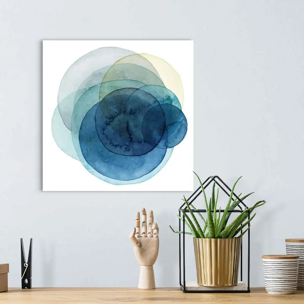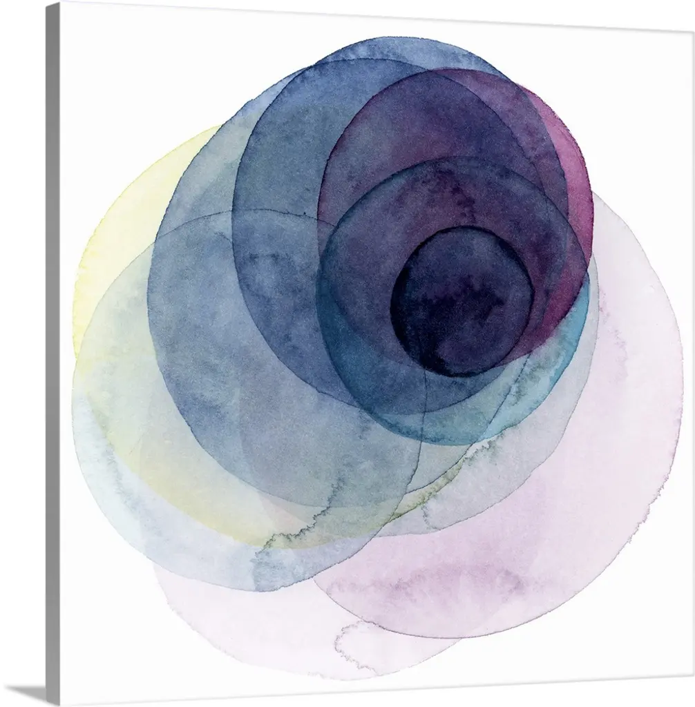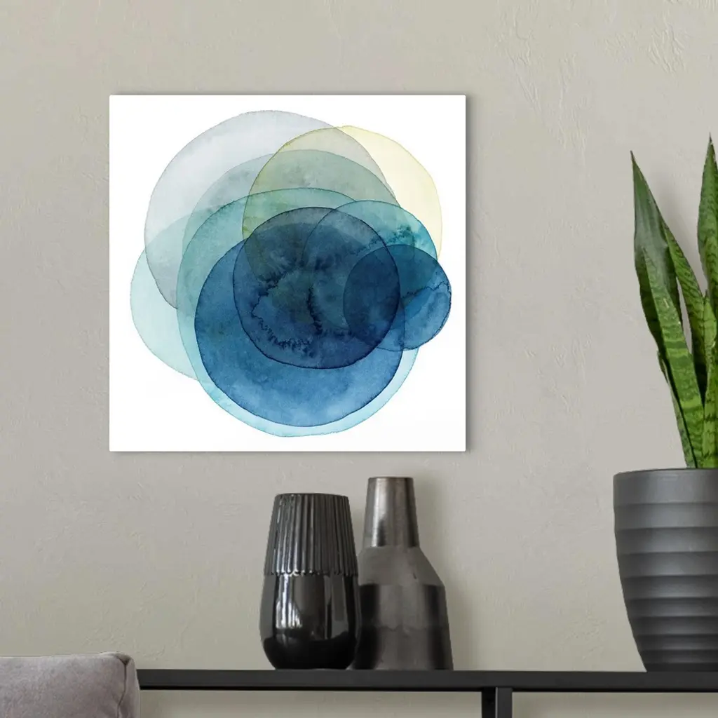 Inspired by the cosmos, these spinning watercolor circles resemble the orbit a planet takes in shades of blue, green and yellow.