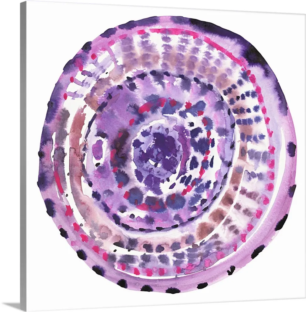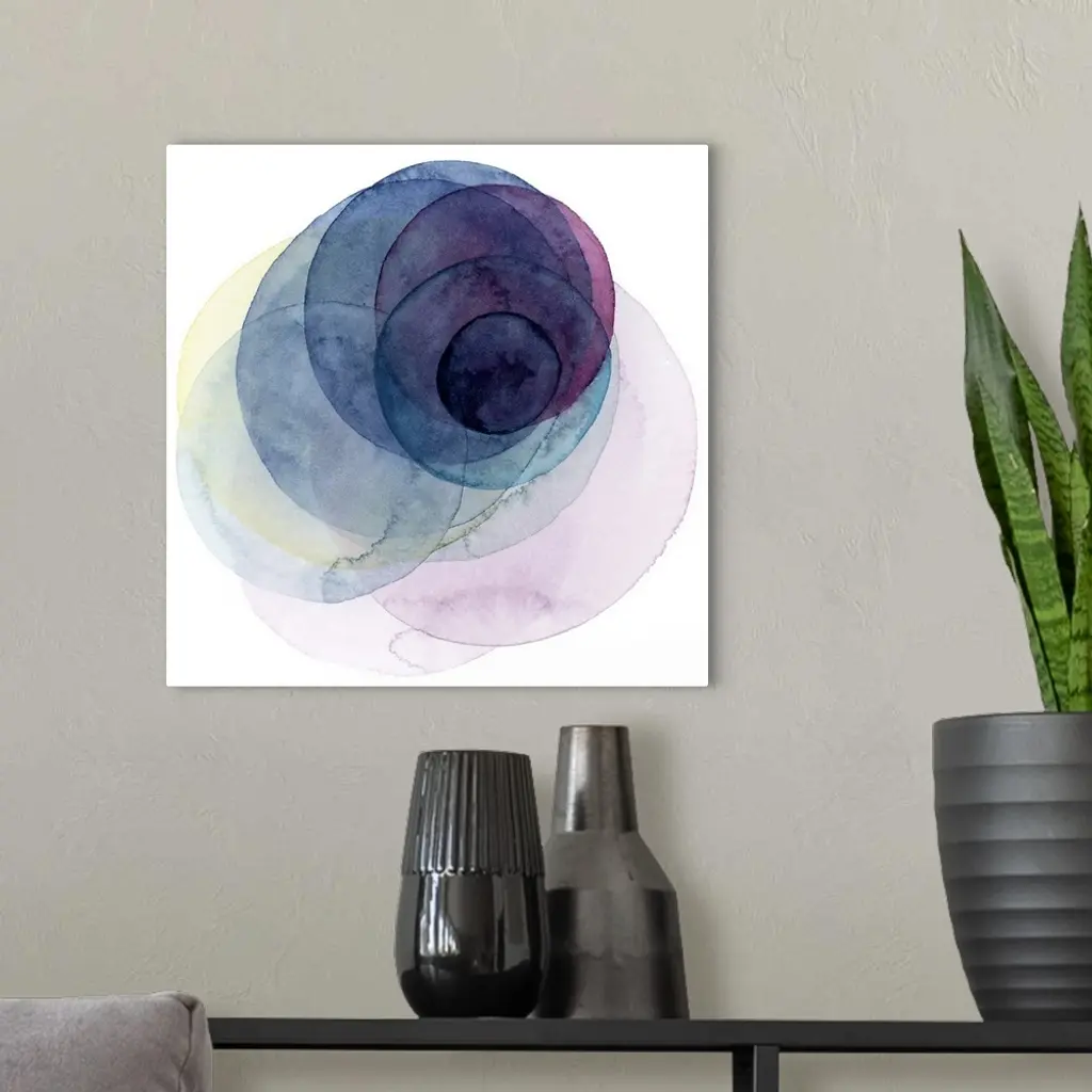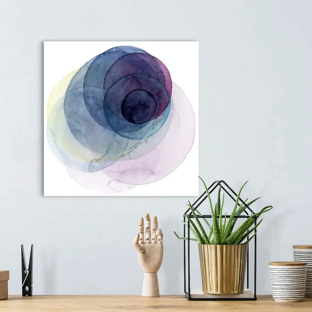 Inspired by the cosmos, these spinning watercolor circles resemble the orbit a planet takes in shades of blue, purple and yellow.