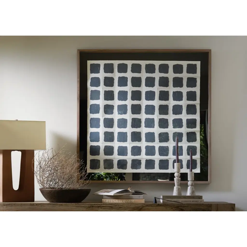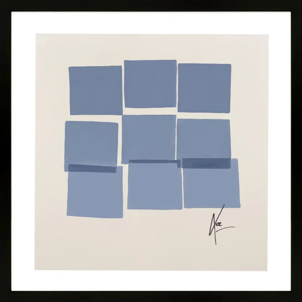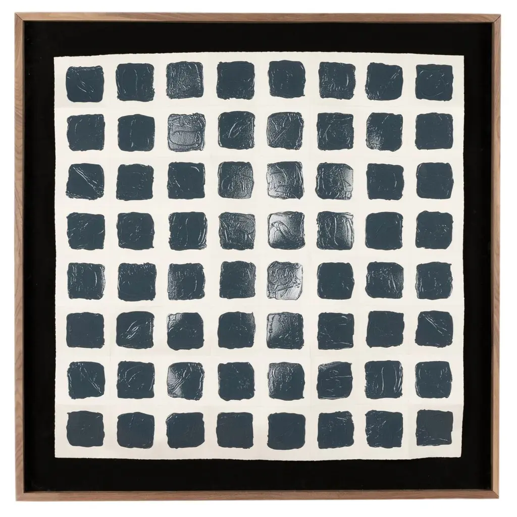 A study based on handpainted, textural deep blue paint swatches full of ripples, folds, and curiosity. Printed on a large piece of heavy texture paper that's folded and loosely mounted within the frame for enhanced movement and shadows across the piece.
