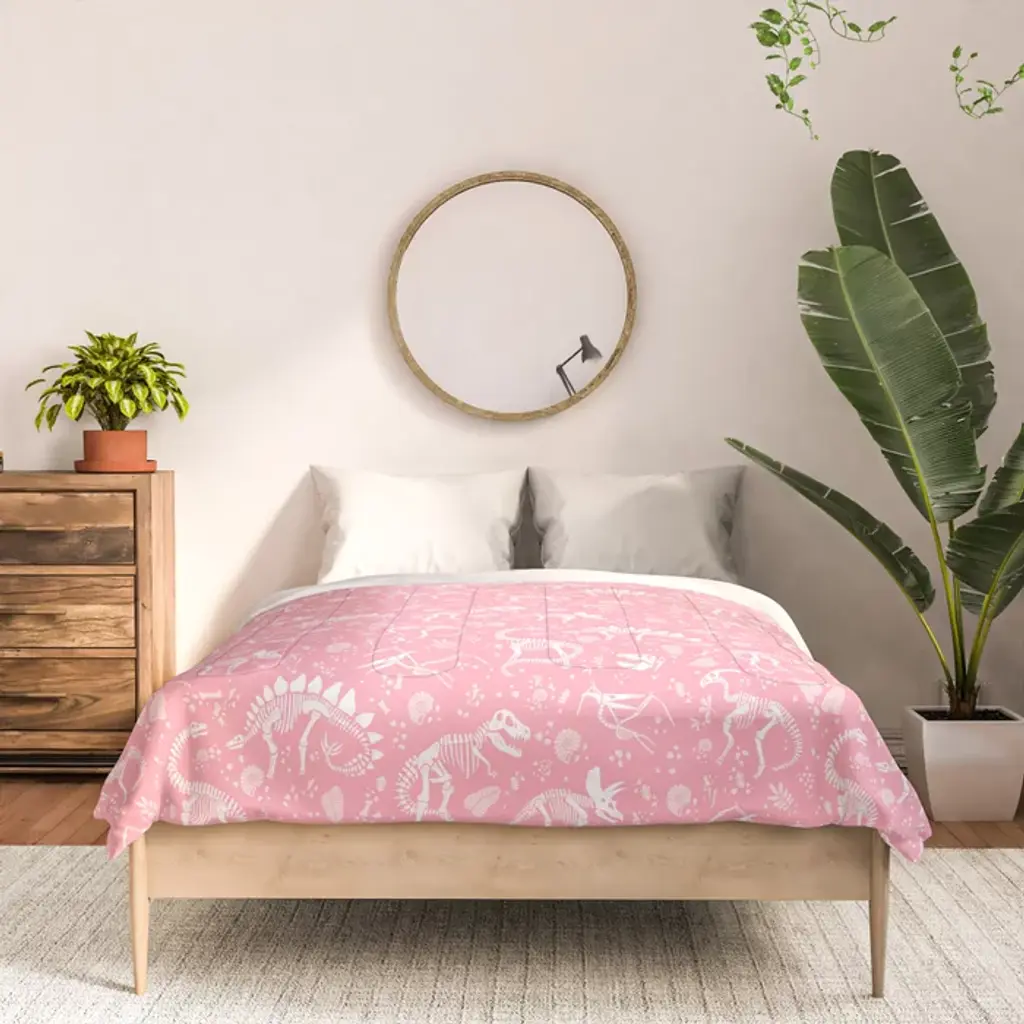 Excavated Dinosaur Fossils In Candy Pink Comforter