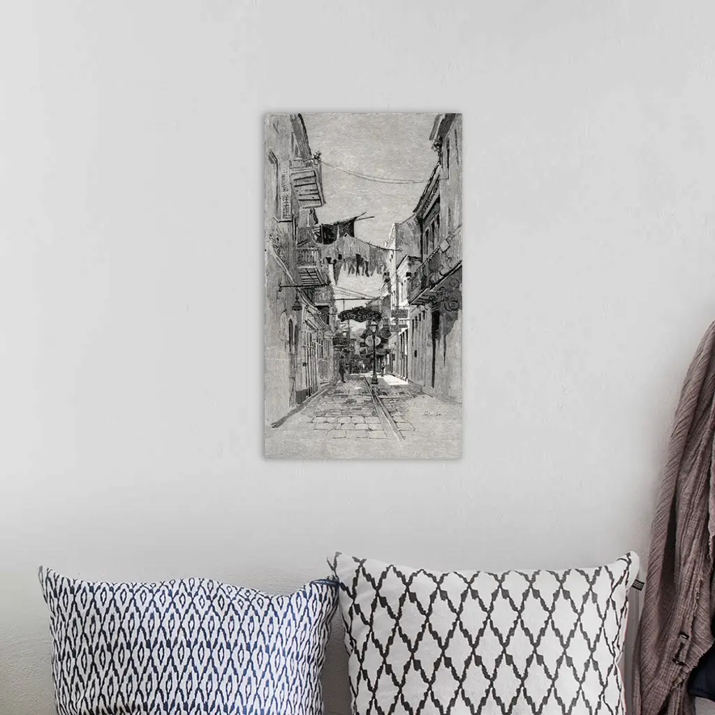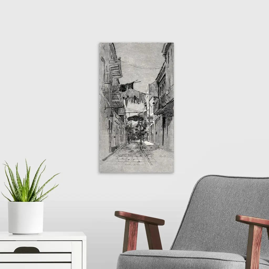Exchange Alley looking toward Canal Street, New Orleans, Louisiana. From the book, "The Century Illustrated Monthly Magazine" May to October, 1883.
