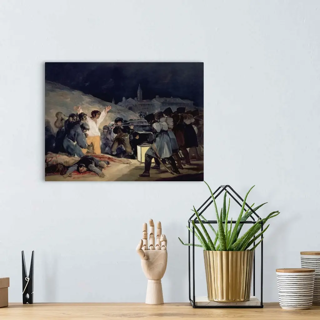 XIR507 Execution of the Defenders of Madrid, 3rd May, 1808, 1814 (see also 155453 for detail); by Goya y Lucientes, Francisco Jose de (1746-1828); oil on canvas; 266x345 cm; Prado, Madrid, Spain; Spanish, out of copyright