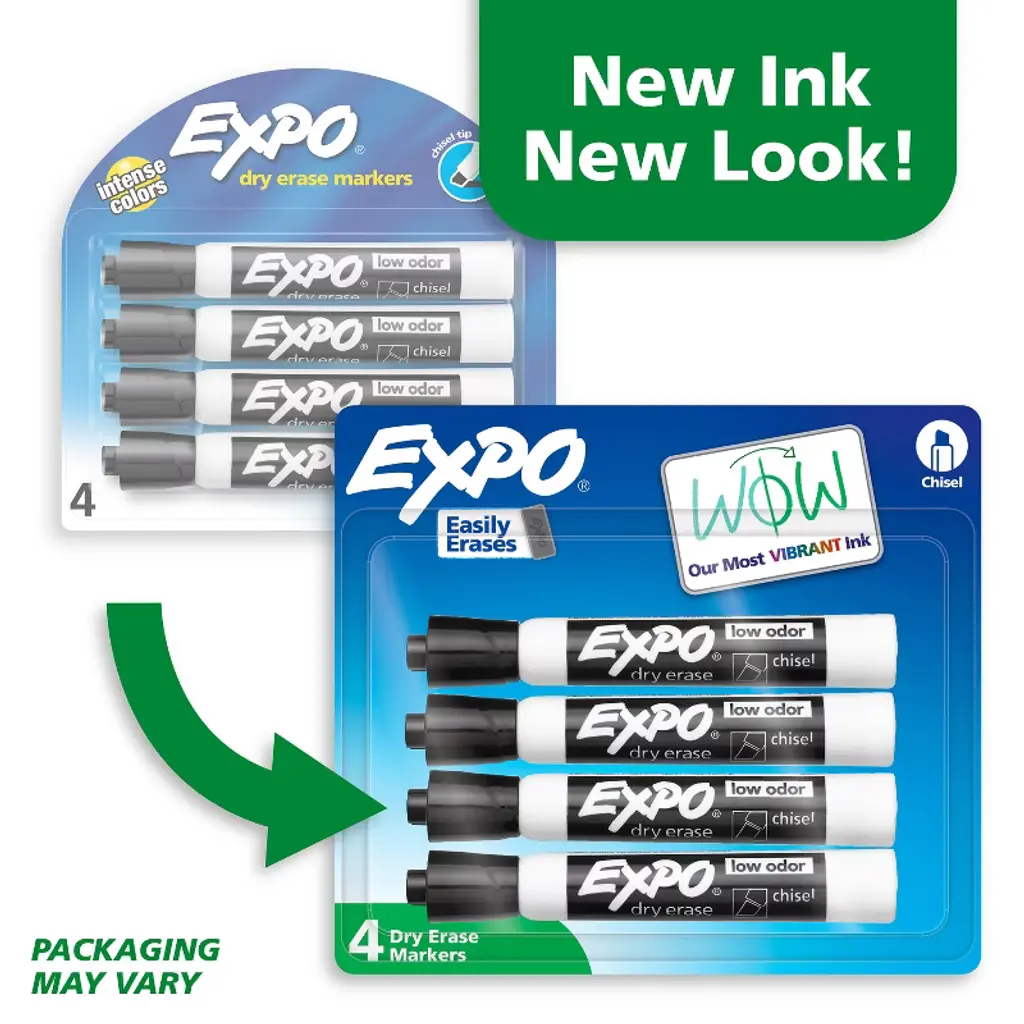 Expo 4Pk Dry Erase Markers Chisel Tip Black