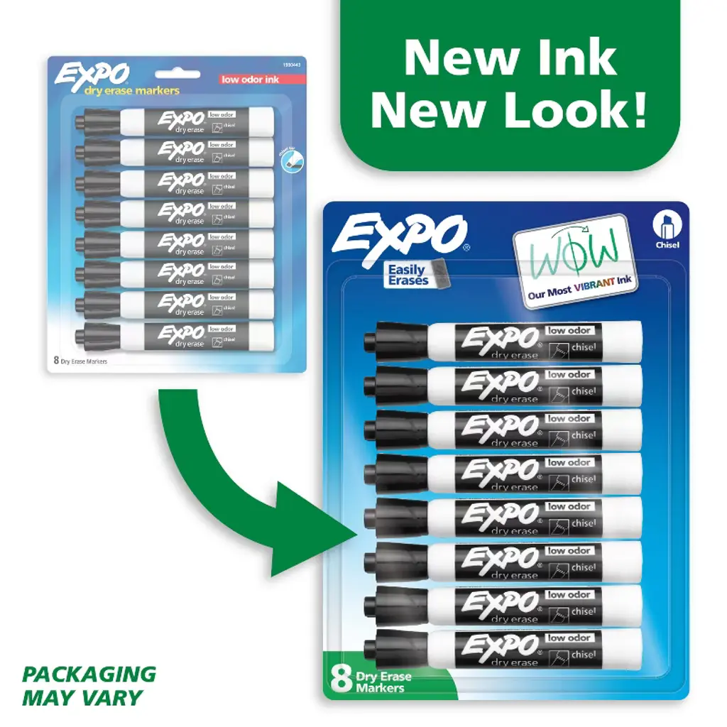 Expo 8Pk Dry Erase Markers Chisel Tip Black: Bold Point, Art & Office Supplies, Ages 6+, No Choking Hazard