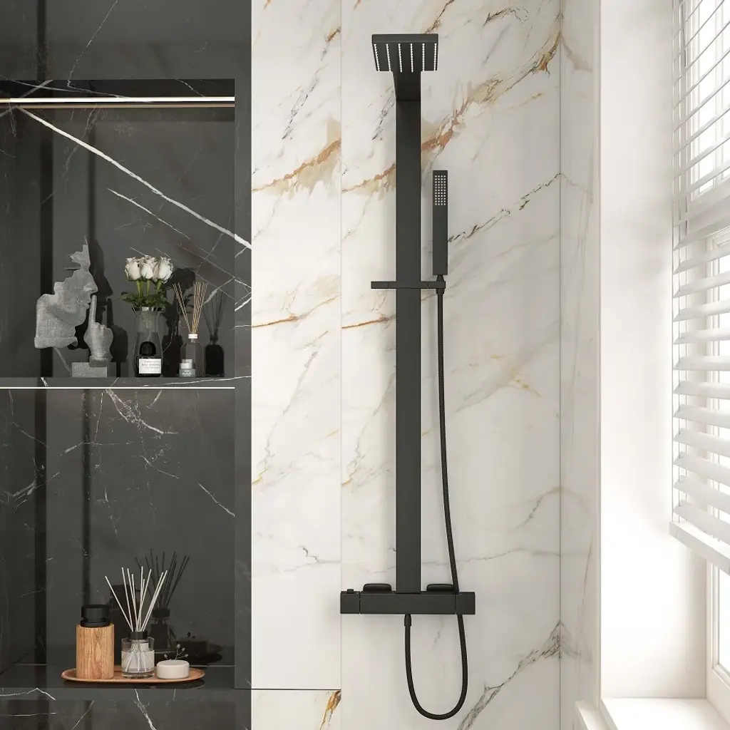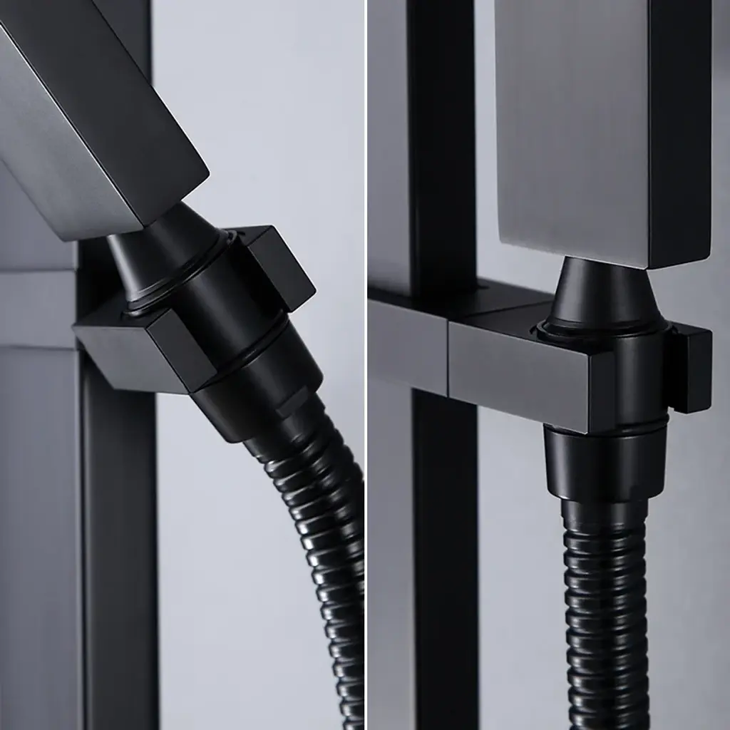 A blend of fashion and function, this shower system will elevate your bathroom to a new level. Boasting a thermostatic shower valve, it keeps water at a suitable temperature which protects you from scald. The adjustable hand shower holder allows the bather to change the height and angle for a better shower experience. Also, a square knob diverters water from the rain shower to the hand shower easily. Constructed of high-grade brass and stainless steel, it's a reliable and durable addition to your bathroom for years to come.